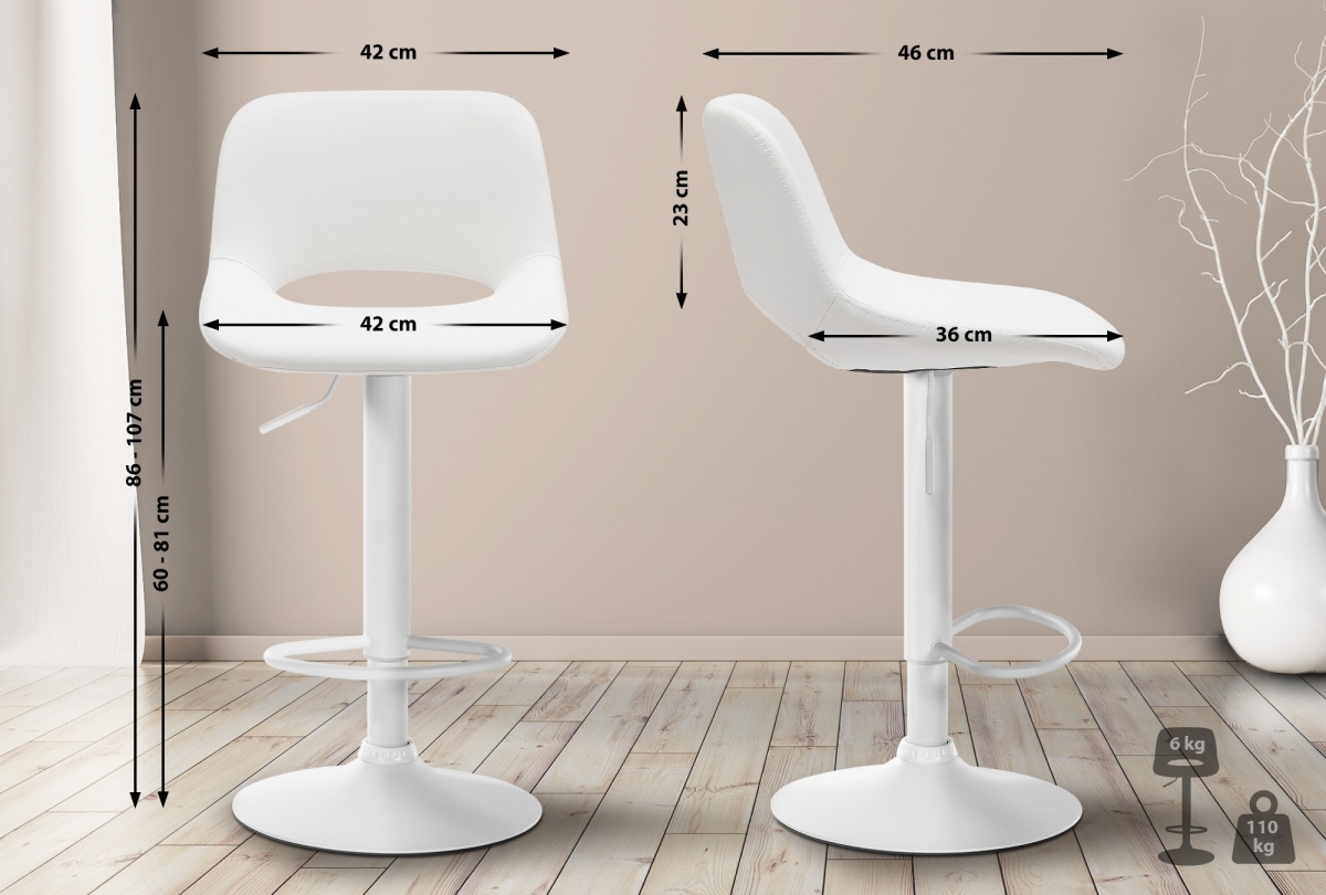 Integrované opierky nôh ponúkajú dodatočný komfort sedenia. Nakoniec sú barové stoličky vybavené chráničmi podlahy, aby boli chránené aj citlivé povrchy.