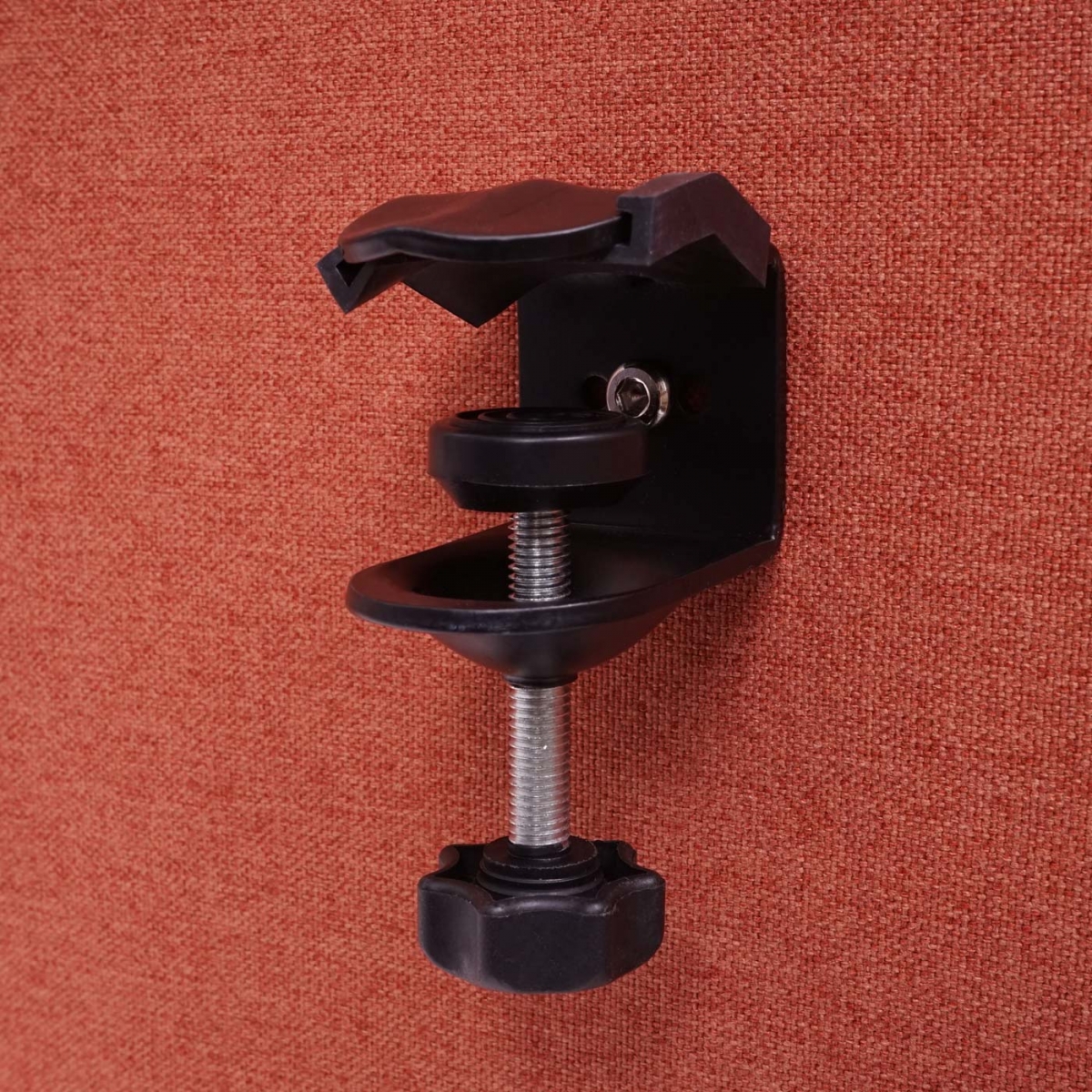 Jednoduchá a rýchla montáž: Všetko, čo musíte urobiť, je namontovať priložené stolové svorky na priečku pomocou skrutiek a potom ich pripevniť k stolu pomocou hviezdicovej skrutky. Vďaka individuálnemu skrutkovému systému je možné oddeľovač stola pripevniť na takmer akýkoľvek stôl. Poznámka: Pre pevné uchytenie musia byť skrutky dlhé 2,5 cm.