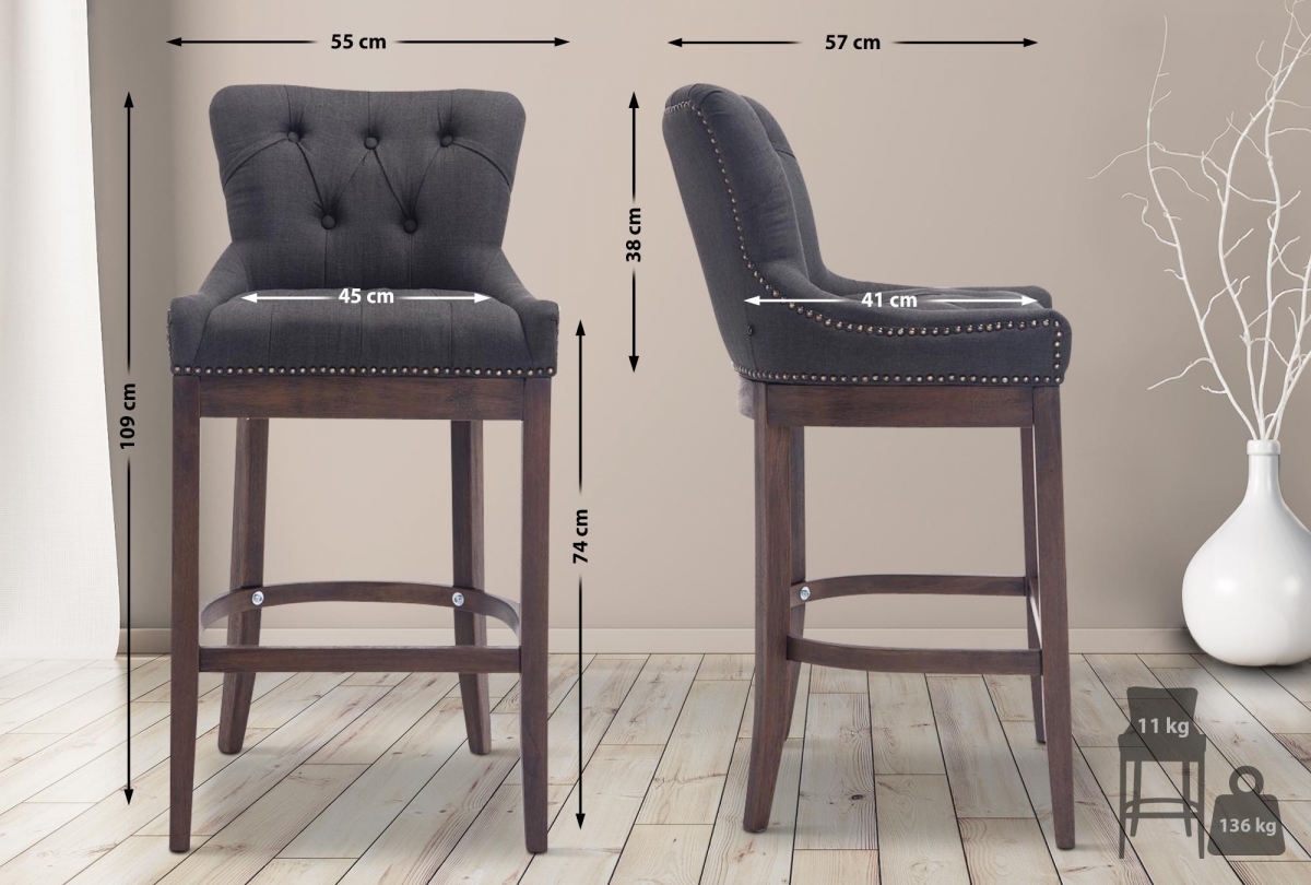 Harmonický súlad látkového sedadla a dreveného rámu vyzerá veľmi extravagantne a dáva každému priestoru osobitný nádych. Dekoratívne gombíky z mosadze sú obzvlášť štýlové a robia túto barovú stoličku výnimočnou.