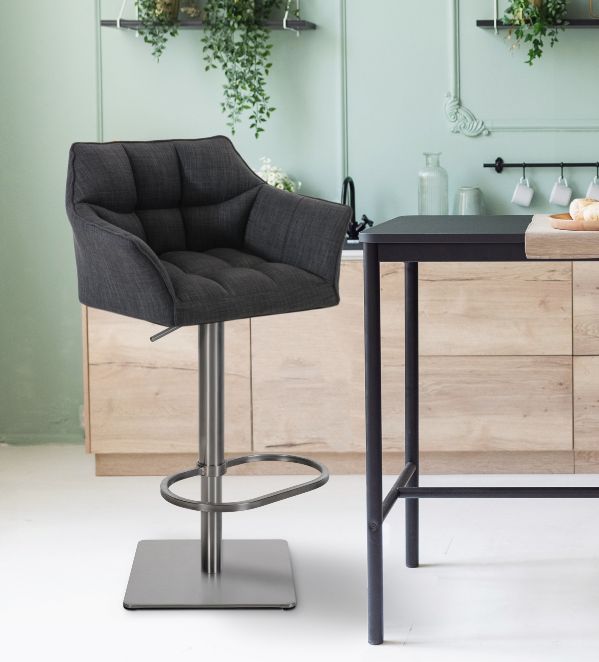 Barová stolička Damas E1 - látka, nerezový rám - Tmavo sivá