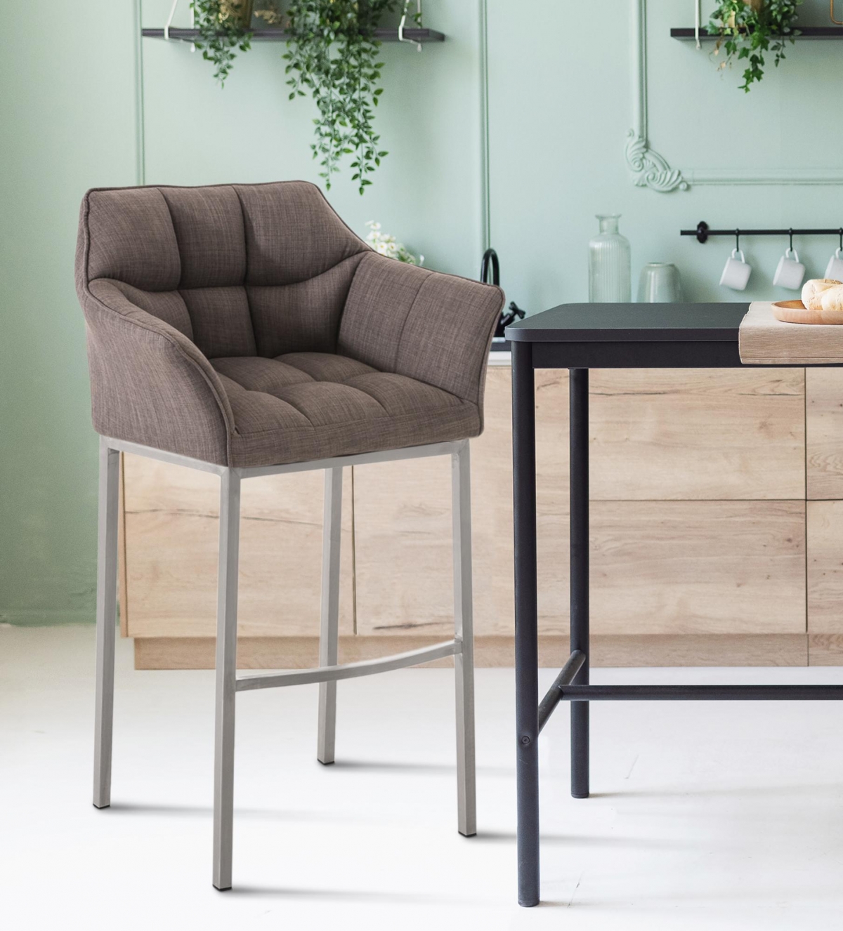 Barová stolička Damas E4 - látka, nerezový rám - Sivá