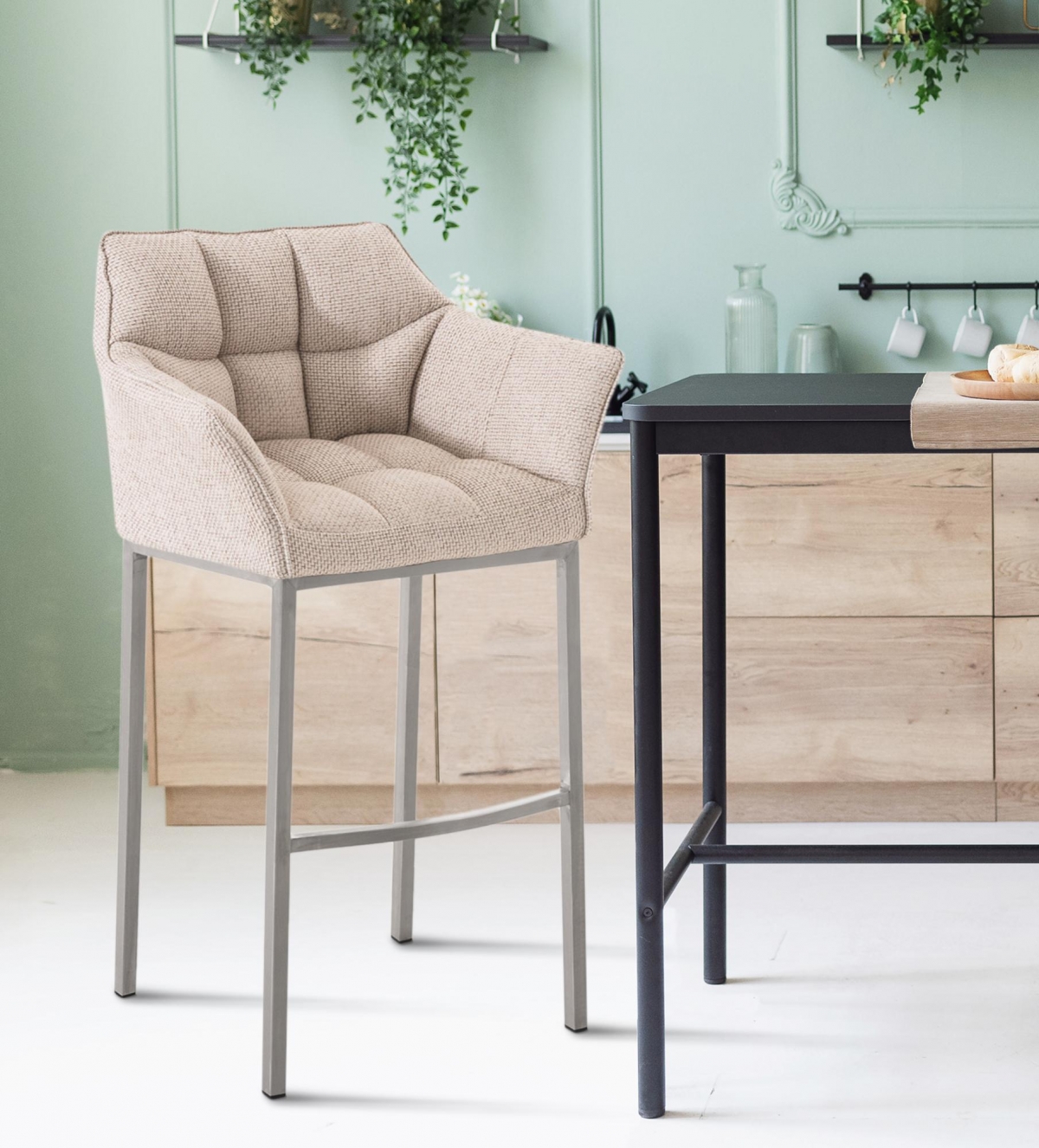 Barová stolička Damas E4 - látka, nerezový rám - Slonová kosť