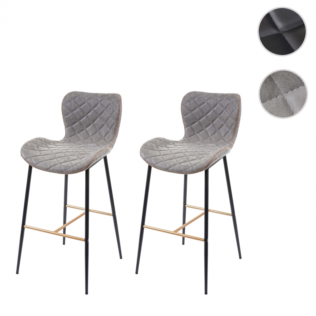 Barová stolička E55 (SET 2 ks) - umelý semiš, čierna / zlatá podnož - Sivá