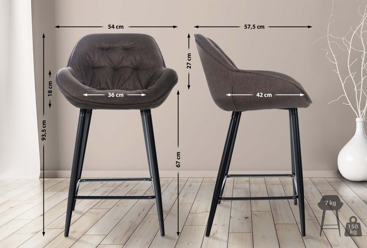 Moderná barová stolička Gibson s elegantným dizajnom a pohodlným látkovým poťahom. Ponúka mäkko polstrované sedadlo, operadlo pre oporu chrbta a praktickú opierku nôh. Pevný kovový rám s nosnosťou 150 kg zaručuje stabilitu.