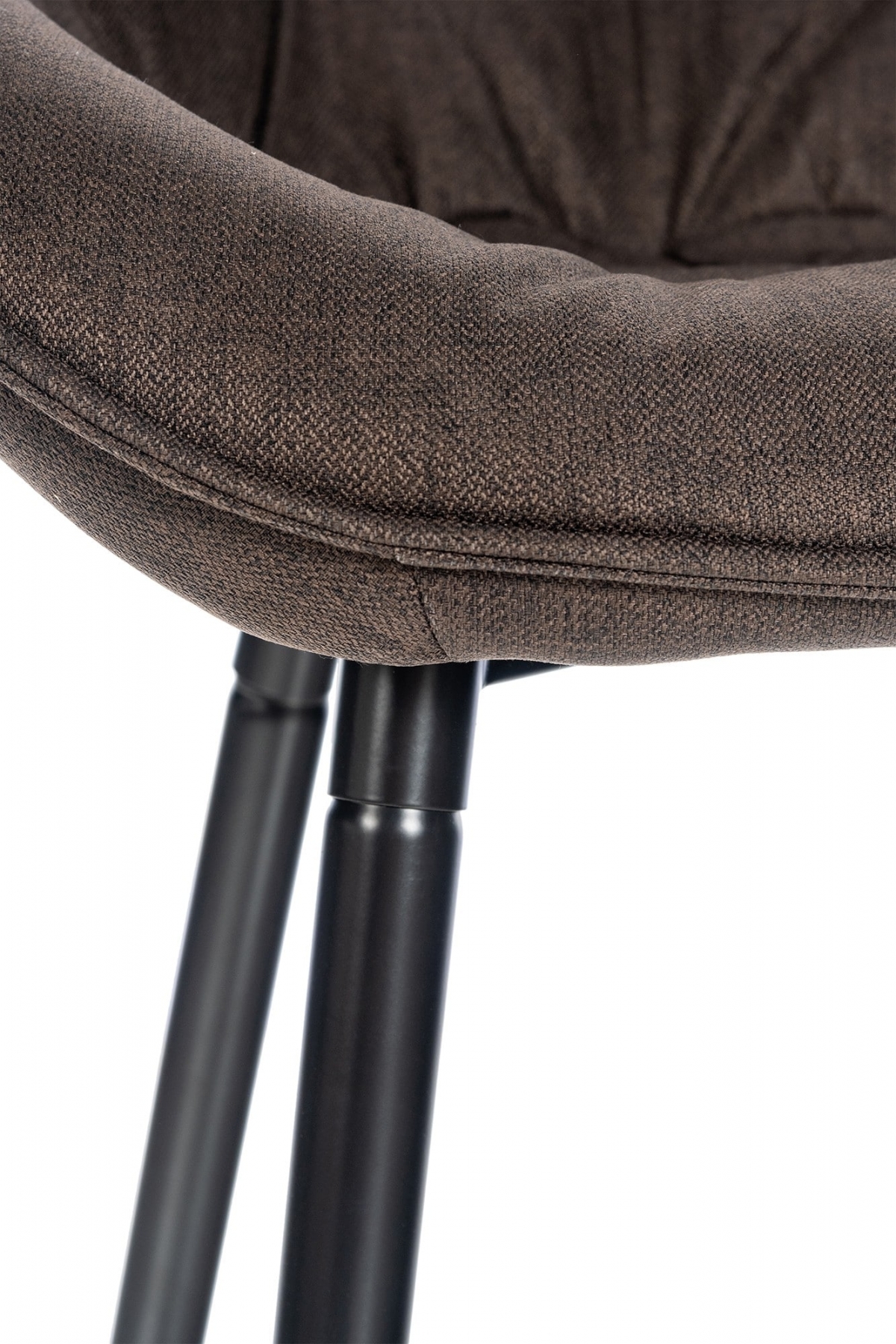 Za svoj elegantný vzhľad stolička vďačí kombinácii matného čierneho kovového rámu a príjemného látkového poťahu.