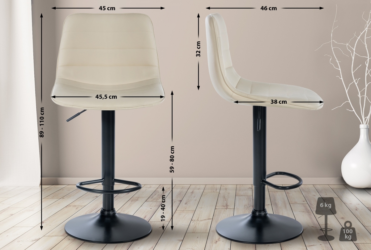 Kovový rám pultovej stoličky je vybavený trúbkovou nohou, ktorá zaisťuje veľmi vysokú stabilitu