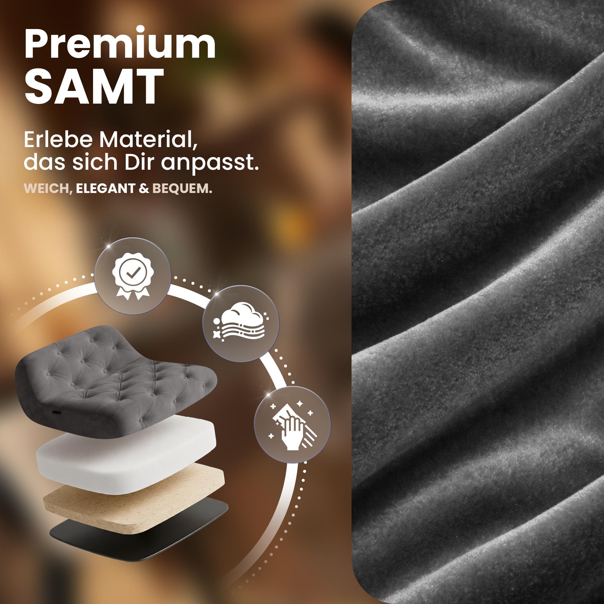 Jej pekný vzhľad je výsledkom štýlovej kombinácie noblesného zamatového poťahu a kovového rámu v rôznych farbách.