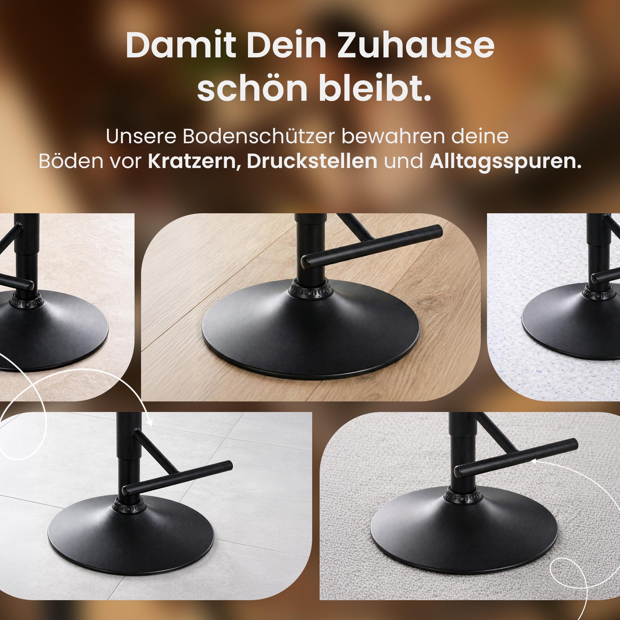 Stabilný štvorkolový rám zabezpečuje bezpečné postavenie, zatiaľ čo ochranný krúžok na podlahe spoľahlivo chráni citlivé podlahy pred poškriabaním.