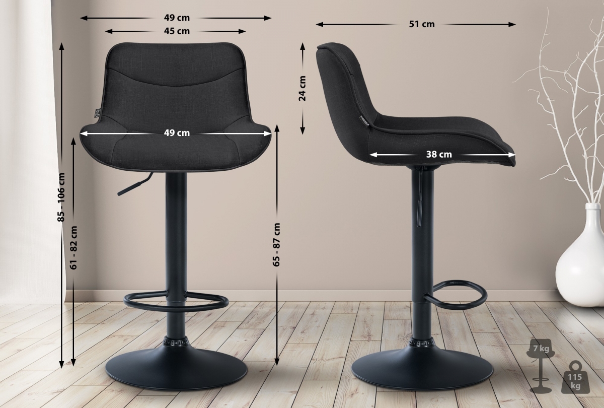 Barová stolička spája funkčnosť a moderný dizajn. Výškovo nastaviteľná barová stolička ponúka polstrované sedadlo a ergonomický tvar pre optimálne pohodlie. Funkcia otáčania o 360° a plynulé nastavenie výšky umožňujú flexibilné polohy sedenia.