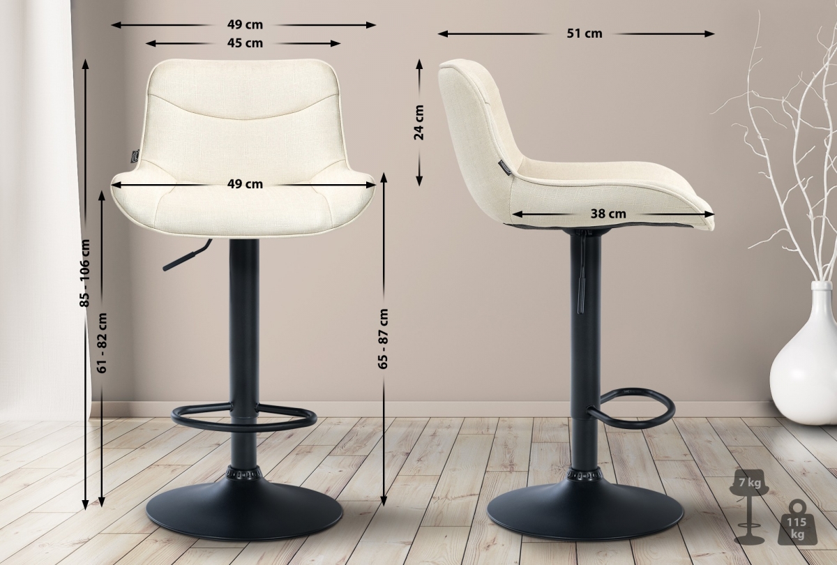 Barová stolička spája funkčnosť a moderný dizajn. Výškovo nastaviteľná barová stolička ponúka polstrované sedadlo a ergonomický tvar pre optimálne pohodlie. Funkcia otáčania o 360° a plynulé nastavenie výšky umožňujú flexibilné polohy sedenia.