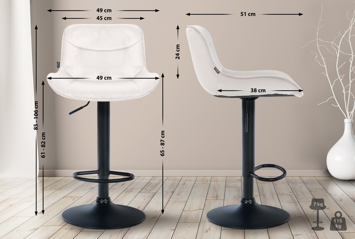 Barová stolička spája funkčnosť a moderný dizajn. Výškovo nastaviteľná barová stolička ponúka polstrované sedadlo a ergonomický tvar pre optimálne pohodlie. Funkcia otáčania o 360° a plynulé nastavenie výšky umožňujú flexibilné polohy sedenia.