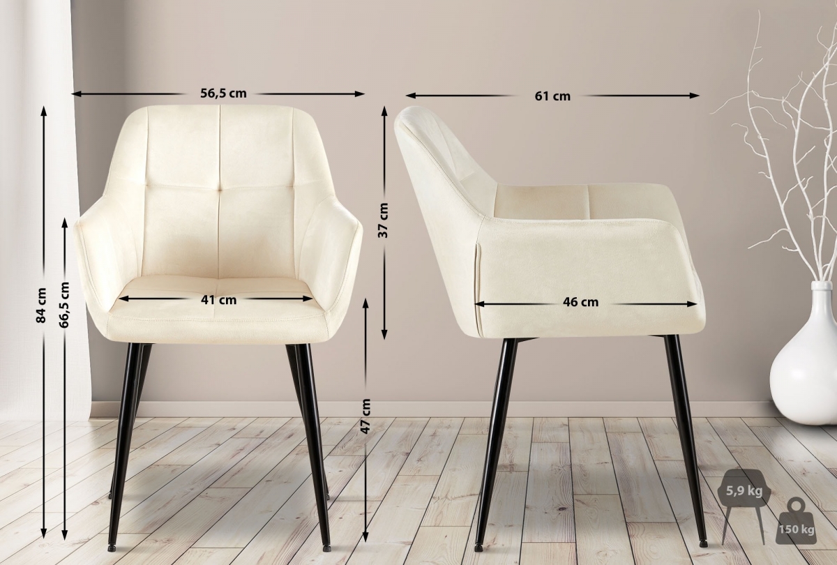 Jedálenská stolička Emia (SET 2 ks) - zamat, kovové nohy čierne - Krémová