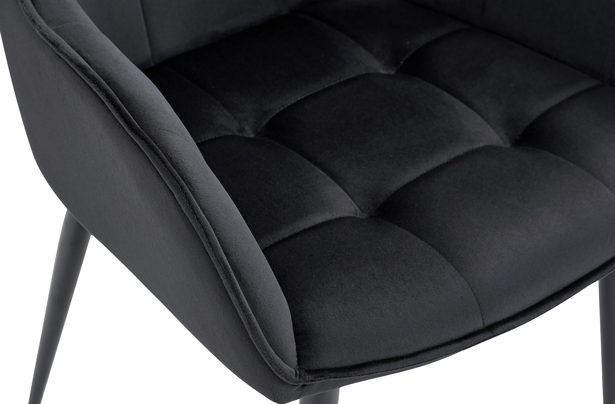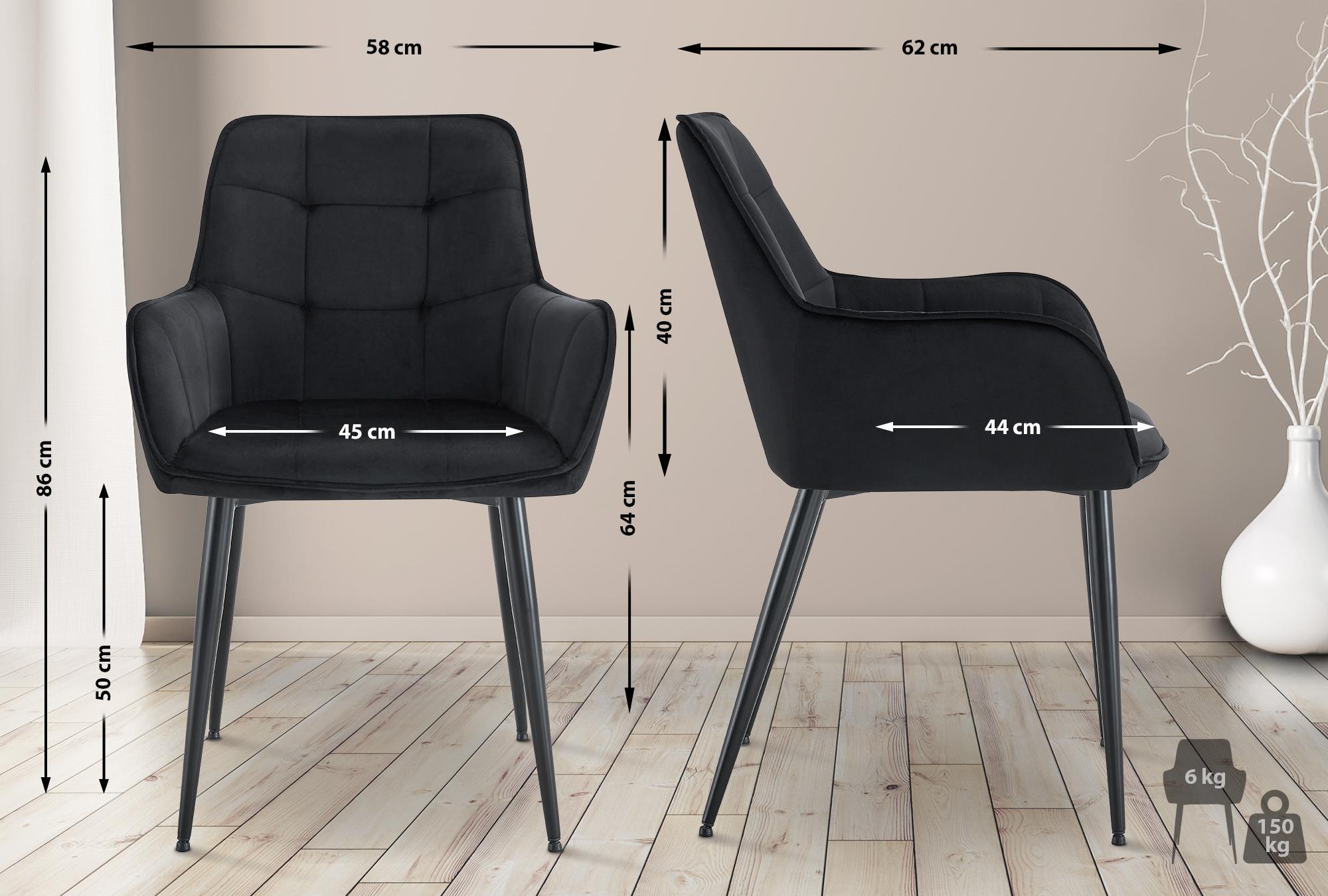 Moderná jedálenská stolička s pohodlným čalúneným sedadlom a zamatovým poťahom. Ergonomický tvar a nosnosť 150 kg ju predurčujú na dlhšie sedenie. Ideálna do jedálne, spálne alebo ako čítacia stolička, zapadne do rôznych interiérov.