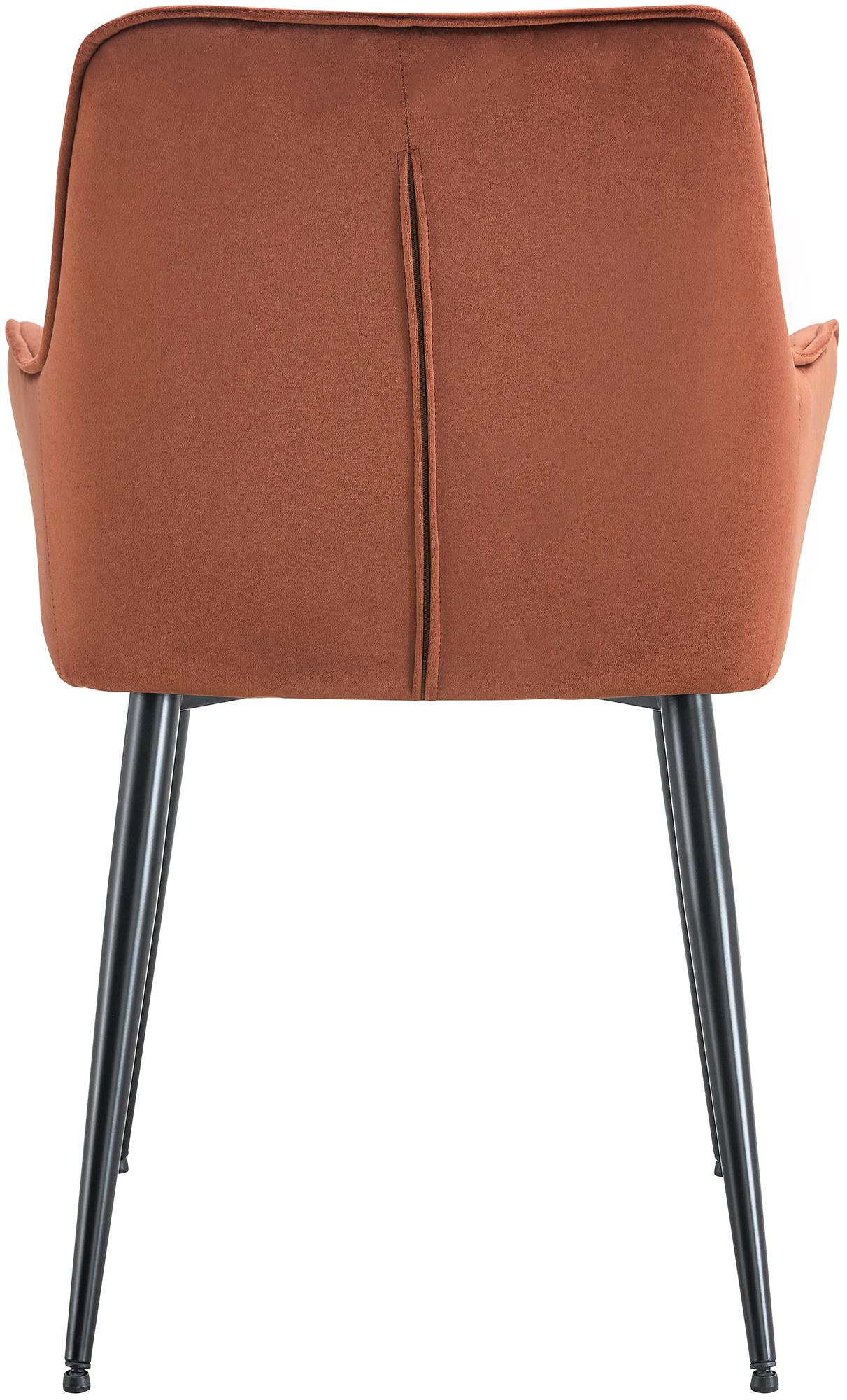 Moderná jedálenská stolička s pohodlným čalúneným sedadlom a zamatovým poťahom. Ergonomický tvar a nosnosť 150 kg ju predurčujú na dlhšie sedenie. Ideálna do jedálne, spálne alebo ako čítacia stolička, zapadne do rôznych interiérov.