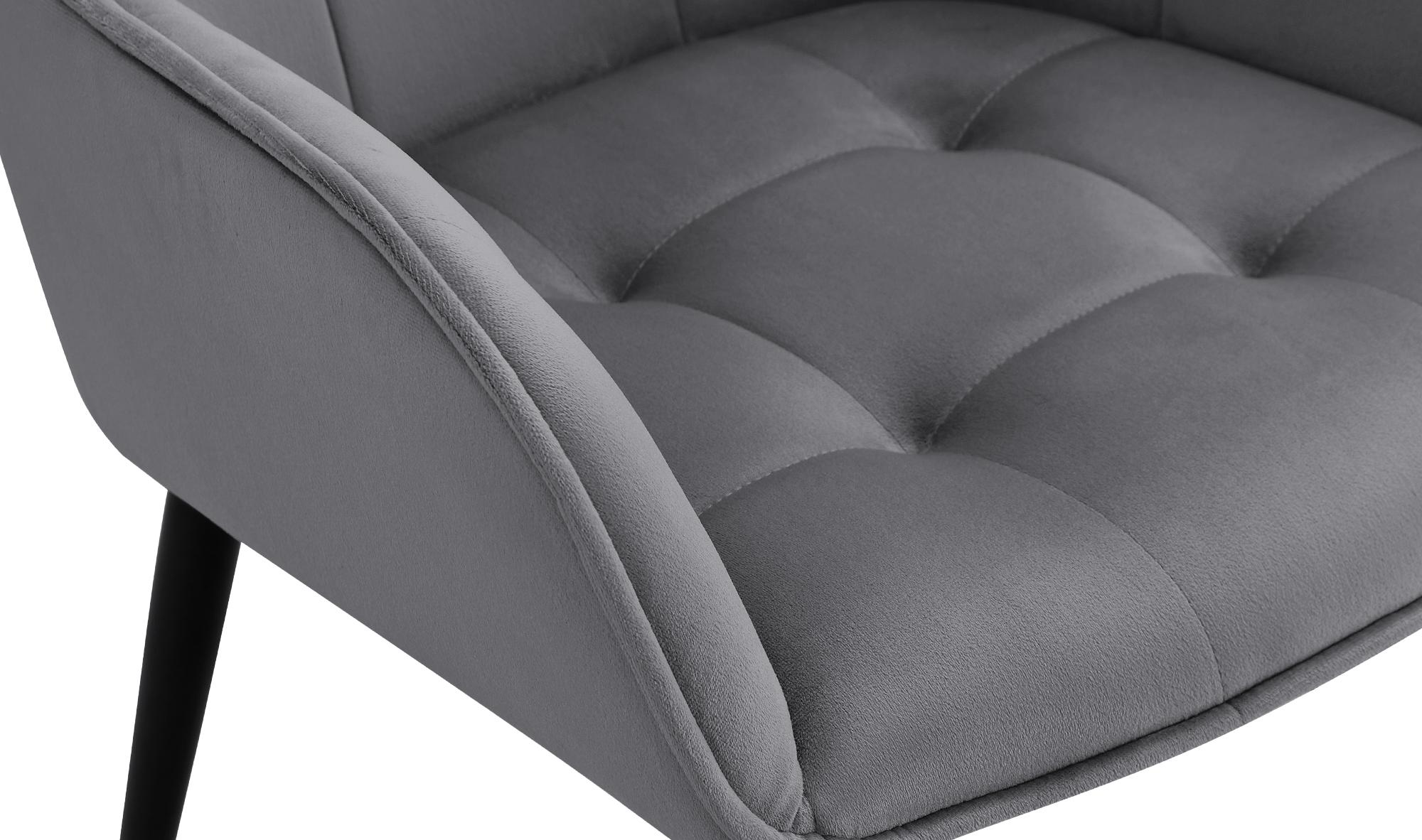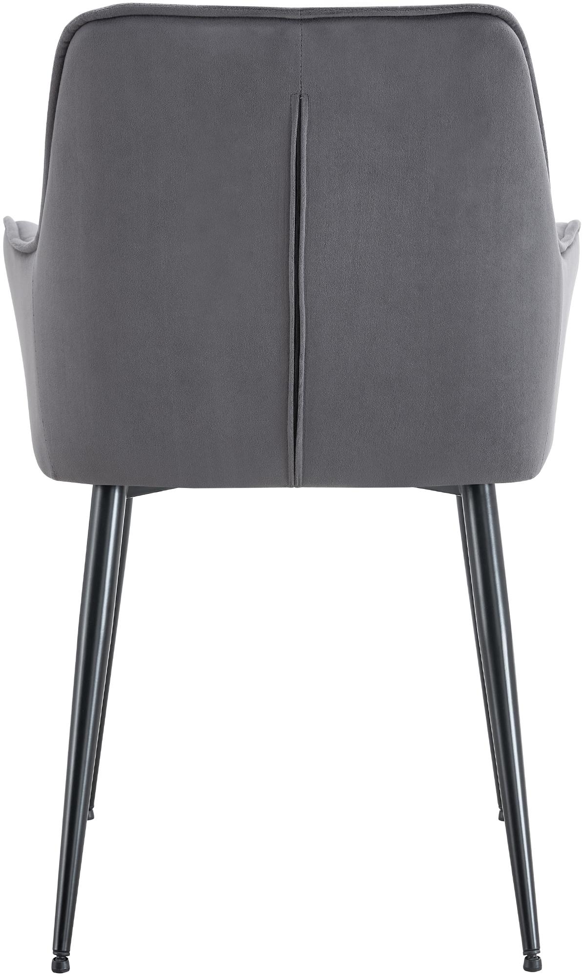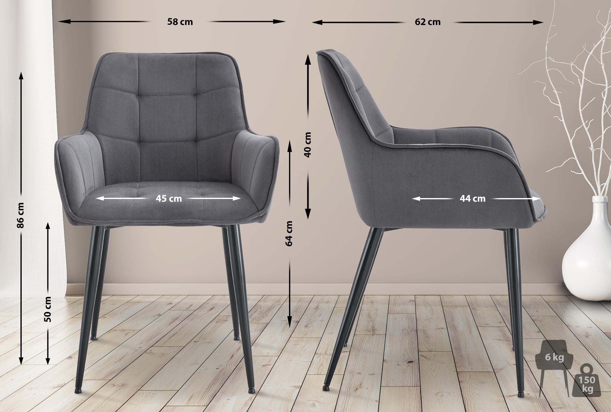 Moderná jedálenská stolička s pohodlným čalúneným sedadlom a zamatovým poťahom. Ergonomický tvar a nosnosť 150 kg ju predurčujú na dlhšie sedenie. Ideálna do jedálne, spálne alebo ako čítacia stolička, zapadne do rôznych interiérov.