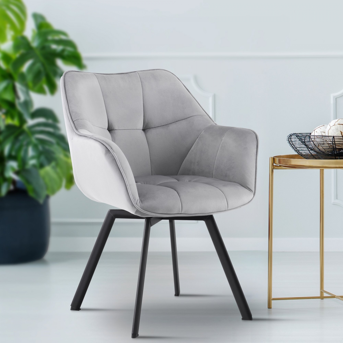 Elegantná čalúnená stolička Jordi spája štýlový dizajn s vysokou funkčnosťou. Otočná konštrukcia, stabilný kovový rám a pohodlné čalúnenie zo zamatu zaručujú komfort v jedálni, kancelárii či obývačke. Ľahká údržba a nosnosť až 150 kg.