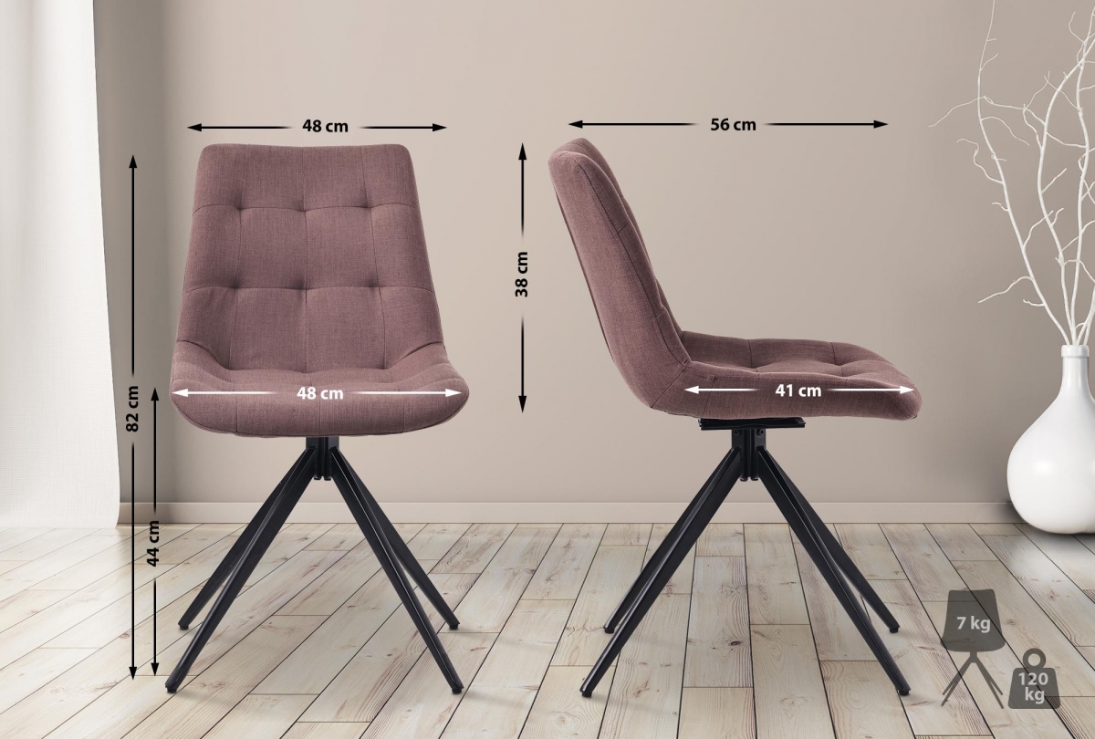 Jedálenská stolička Merna spája pohodlie s moderným dizajnom. Čalúnená, otočná stolička s nosnosťou 120 kg je vhodná do kuchyne, jedálne aj obývačky. Ponúka komfortné sedenie vďaka polstrovaniu a zamatovému alebo látkovému poťahu.