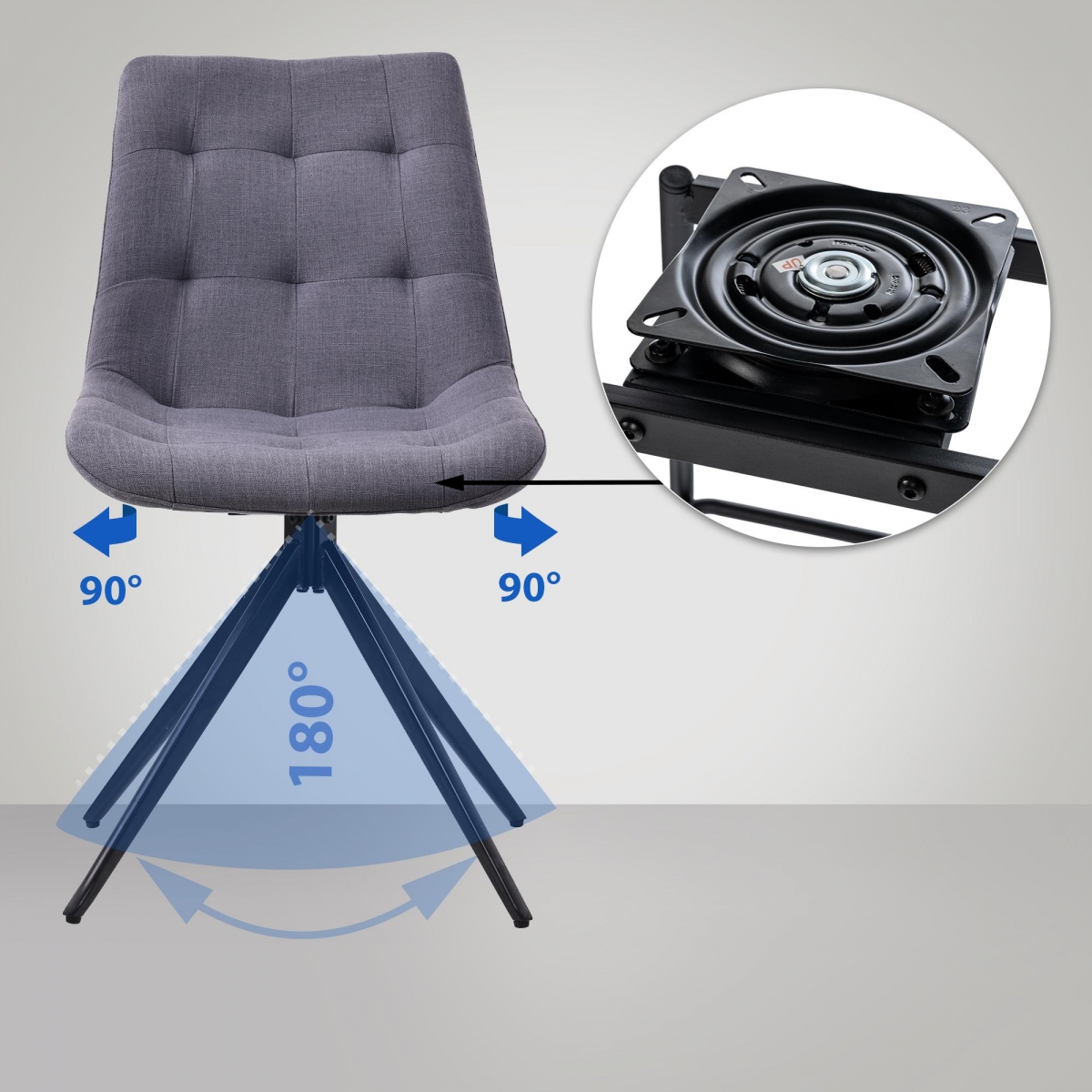 Kľúčom k pohodlnému sedeniu je príjemné polstrovanie nad sedákom a operadlom. Takzvaná funkcia otáčania zaisťuje, že sedadlo možno otáčať v rozsahu 180 stupňov, čo poskytuje dodatočnú voľnosť pohybu. Škrupina sedadla sa automaticky vráti do východiskovej polohy. Sedačka je potiahnutá krásnym poťahom, buď látkovým alebo zamatovým.