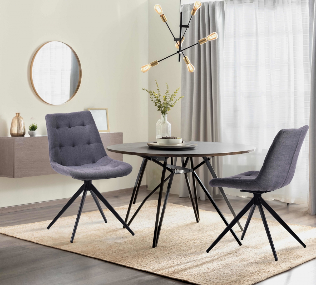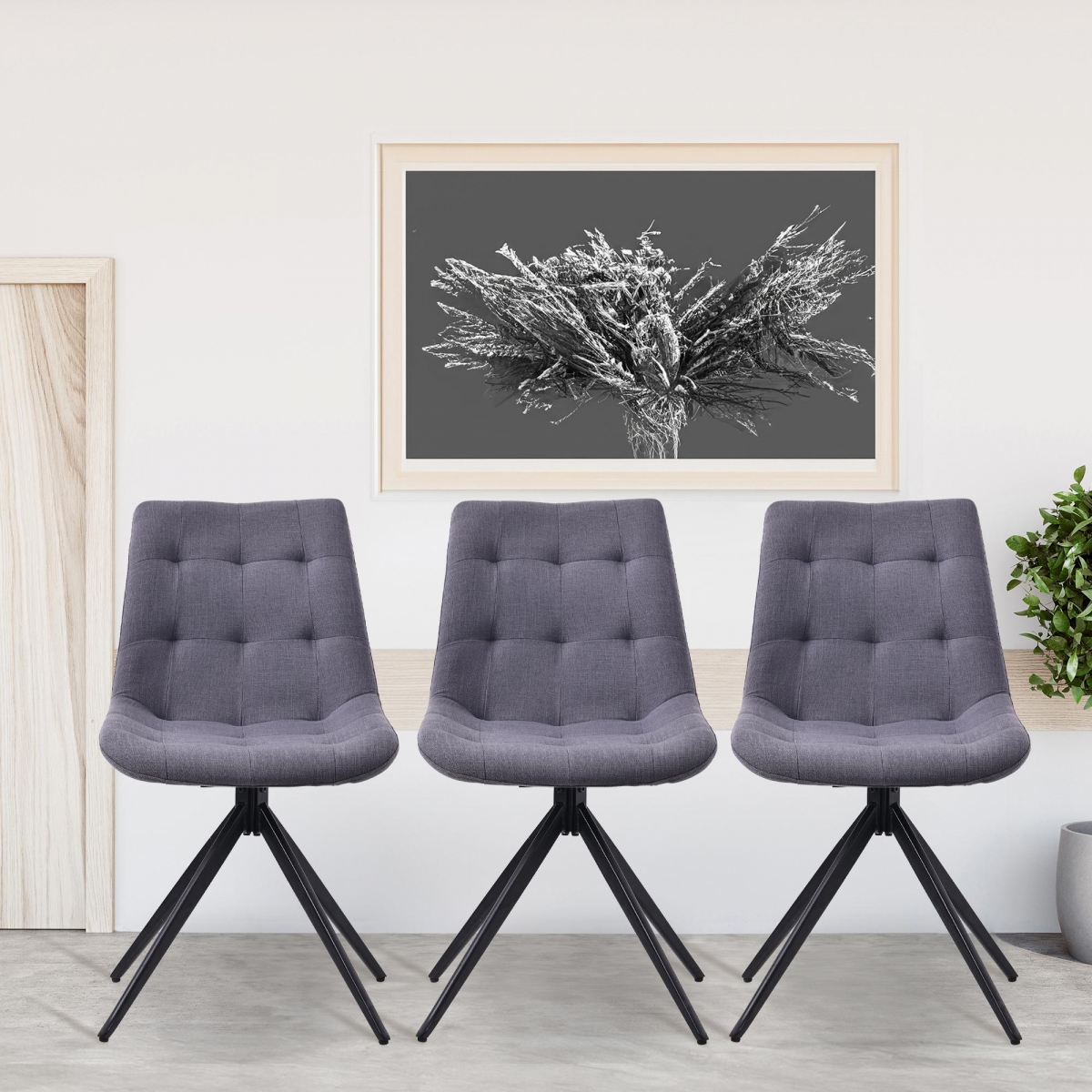 Jedálenská stolička Merna spája pohodlie s moderným dizajnom. Čalúnená, otočná stolička s nosnosťou 120 kg je vhodná do kuchyne, jedálne aj obývačky. Ponúka komfortné sedenie vďaka polstrovaniu a zamatovému alebo látkovému poťahu.