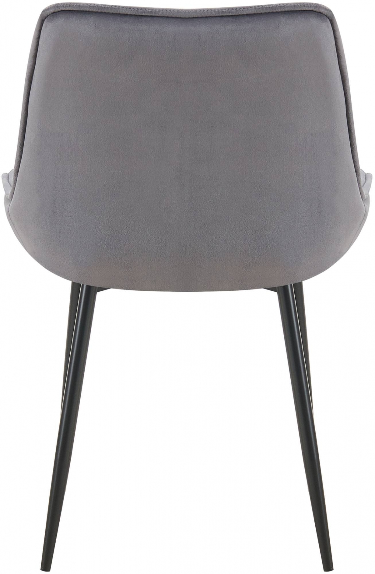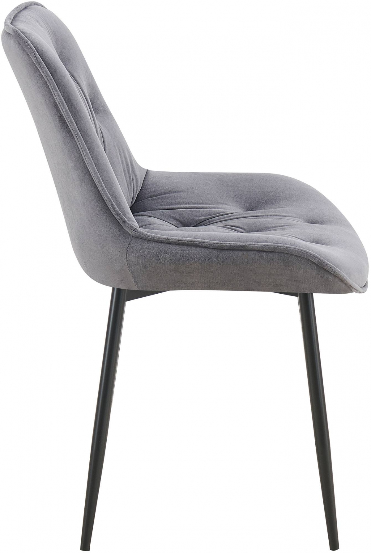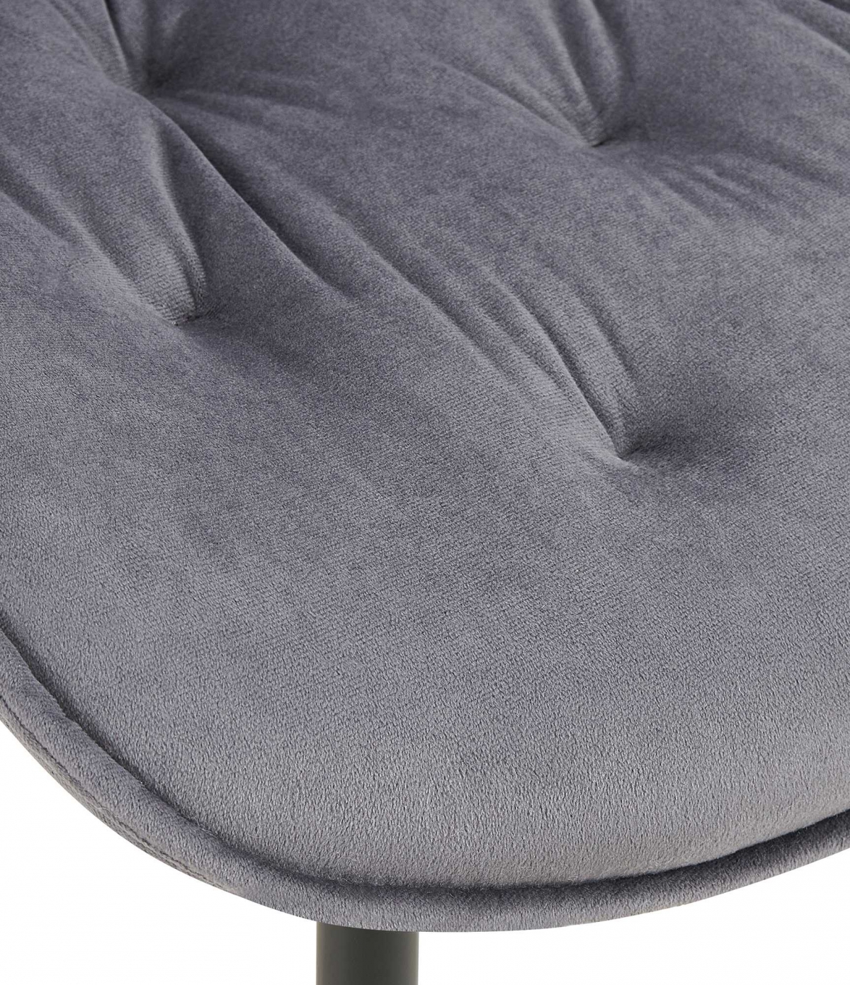 Jedálenská stolička Wallace spája vysoký komfort sedenia s moderným vzhľadom. Táto čalúnená stolička je skvelou voľbou k vášmu jedálenskému stolu, kuchyni, obývačke, ale aj na iné účely. Kľúčom k pohodlnému sedeniu je príjemné polstrovanie nad sedákom a operadlom. Sedačka má ľahko udržiavateľný zamatový poťah s módnym prešívaným vzorom. Základom tejto jedálenskej stoličky je stabilný čierny štvornohý rám vyrobený z pevného kovu. To znamená, že kuchynská stolička bezpečne udrží až 120 kg. Podlahové chrániče zabraňujú poškodeniu citlivých podláh.