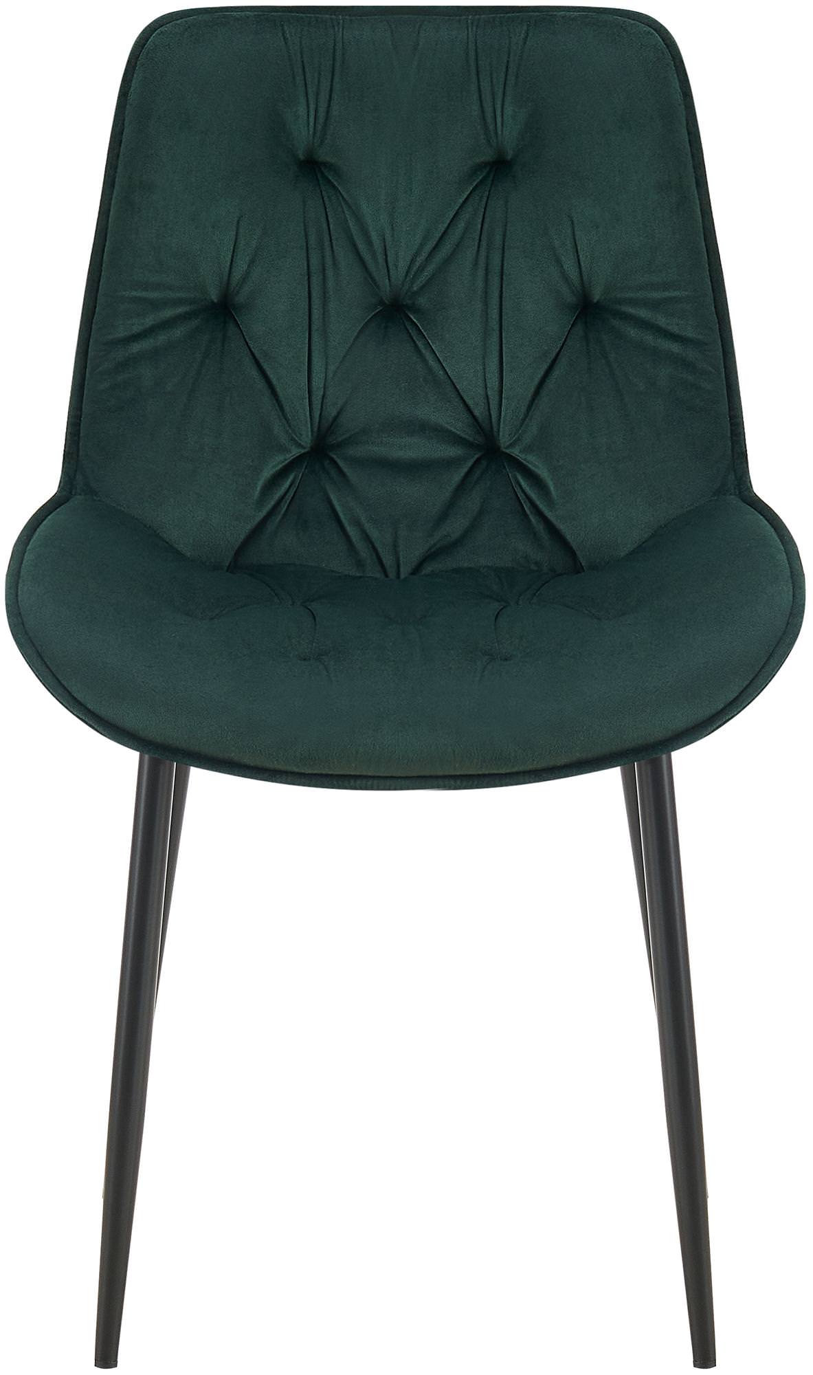 Luxusná zamatová jedálenská stolička Wallace s moderným dizajnom a vysokým komfortom. Čalúnená stolička s prešívaným vzorom a pevným kovovým rámom je vhodná do jedálne, kuchyne či obývačky a unesie až 120 kg.