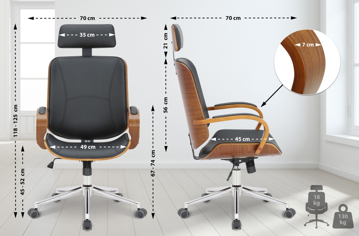Drevený rám u tejto kancelárskej stoličky upúta na prvý pohľad a dodá miestnosti elegantný dizajn. Vďaka plynulo nastaviteľnej výške sedenia a ergonomickému sedadlu je zaručené pohodlie. Obsahuje aj mechanizmus pre nakláňanie.