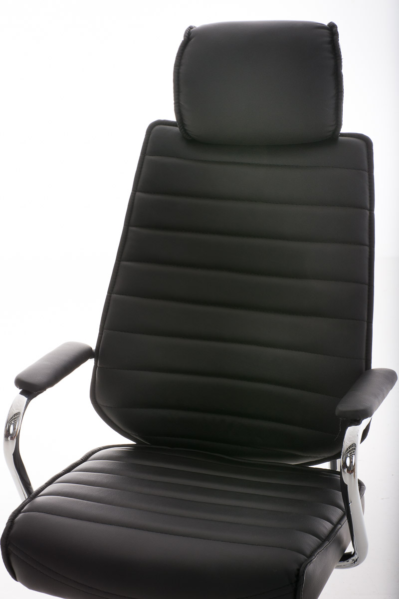 Moderné kancelárske kreslo s vysokým operadlom a kvalitným koženým poťahom pre maximálny komfort pri práci. Nastaviteľná výška, chrómovaná podnož s kolieskami a nosnosť 120 kg zaručujú praktickosť a dlhú životnosť.