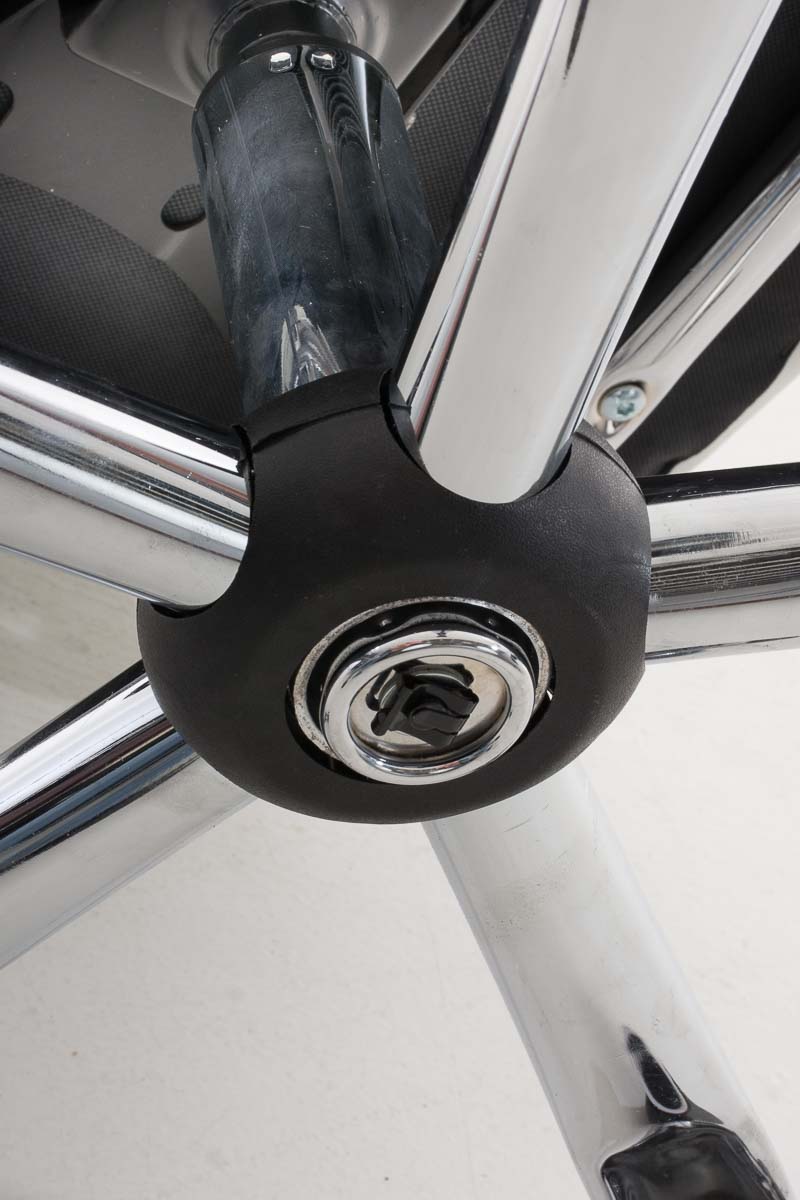 Podnož je pochrómovaná, má 5 koliesok a nastavenie výšky.