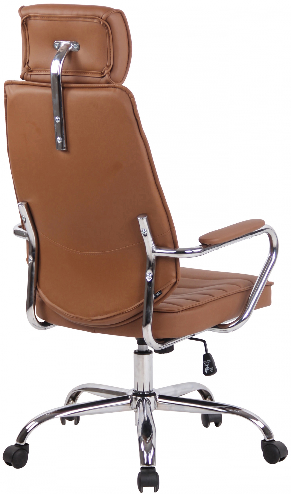 Moderné kancelárske kreslo s vysokým operadlom a kvalitným koženým poťahom pre maximálny komfort pri práci. Nastaviteľná výška, chrómovaná podnož s kolieskami a nosnosť 120 kg zaručujú praktickosť a dlhú životnosť.