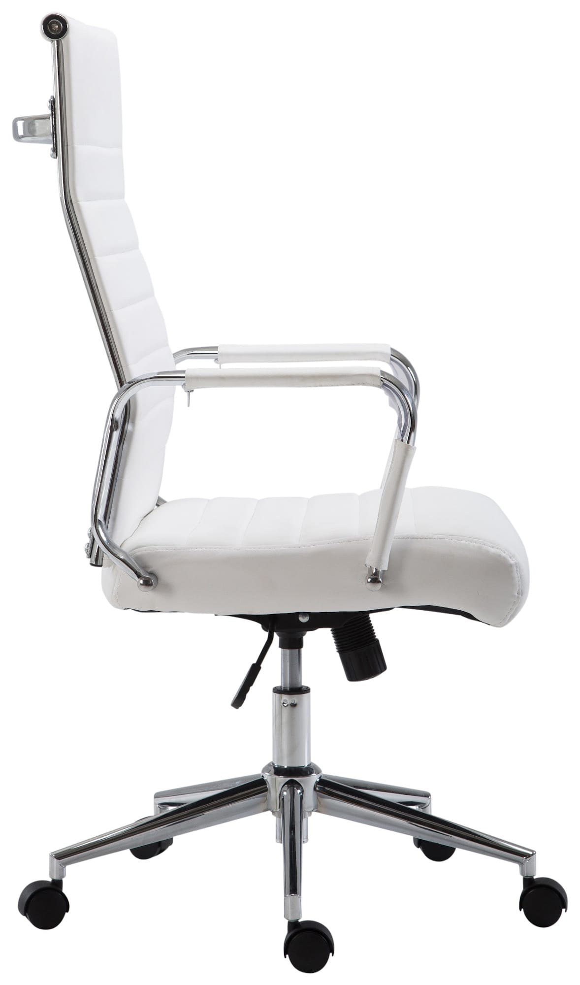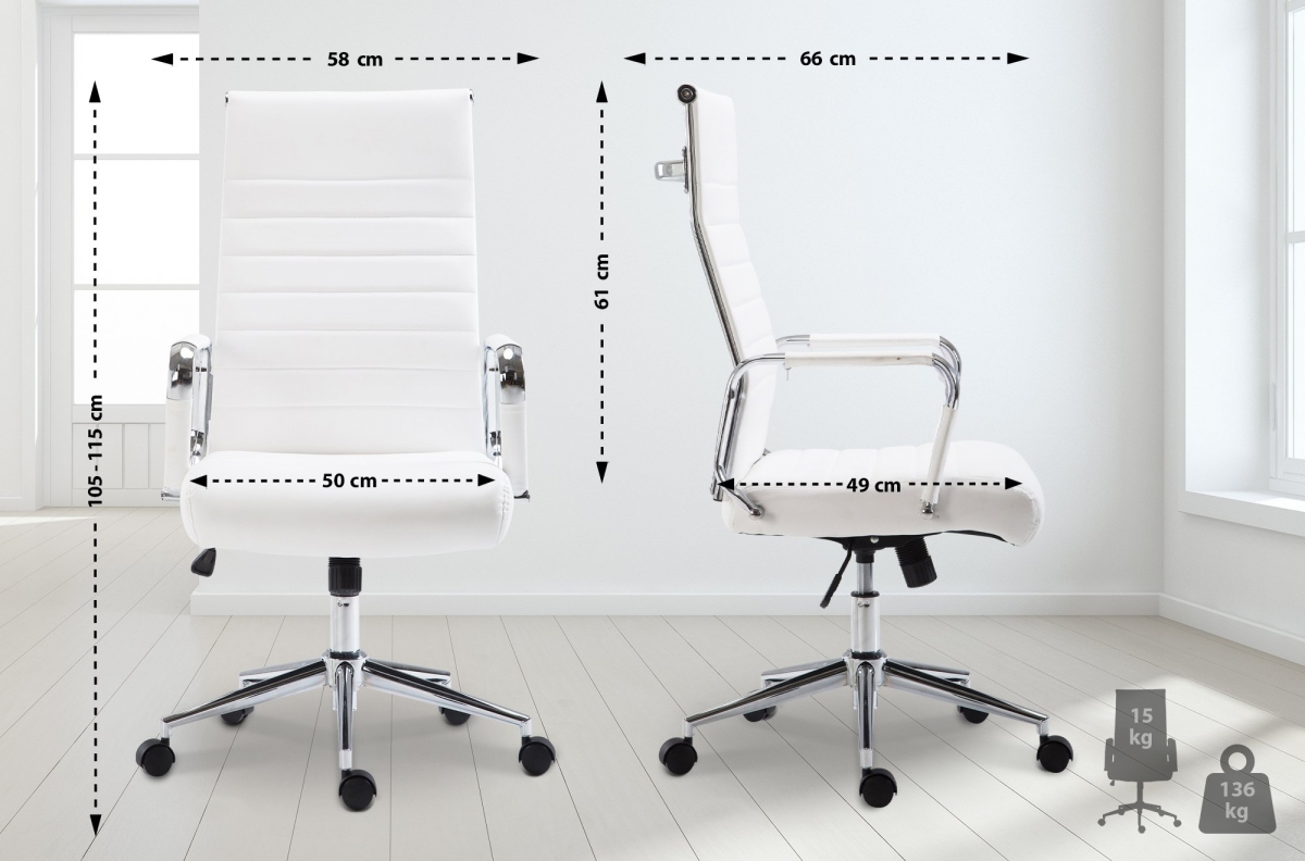 Moderné kancelárske kreslo s vysokým operadlom a kvalitným koženkovým poťahom. Nastaviteľná výška, chrómovaná podnož s kolieskami a ergonomický dizajn zabezpečujú maximálny komfort pri práci. Nosnosť až 136 kg.