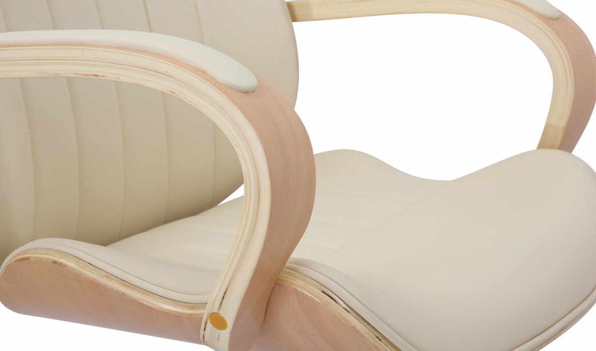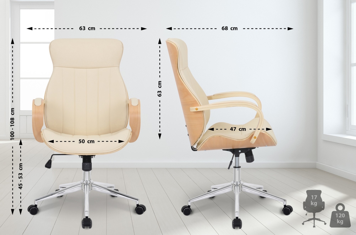 Elegantná kancelárska stolička s dreveným rámom a kvalitným čalúnením. Ergonomické sedadlo, nastaviteľná výška a nakláňací mechanizmus zaručujú maximálne pohodlie pri práci. Stabilná konštrukcia s chrómovaným kovovým rámom a nosnosťou 120 kg.