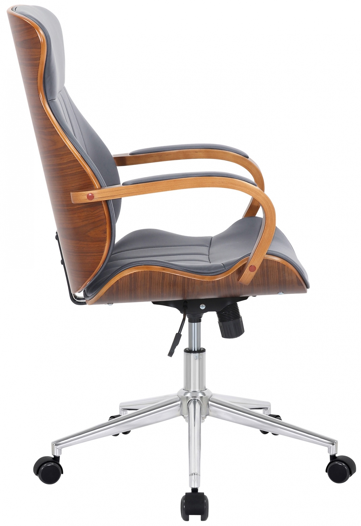 Elegantná kancelárska stolička s dreveným rámom a kvalitným čalúnením. Ponúka nastaviteľnú výšku, ergonomické sedadlo a mechanizmus nakláňania pre maximálne pohodlie. Stabilný chrómový rám s kolieskami a nosnosťou 120 kg.