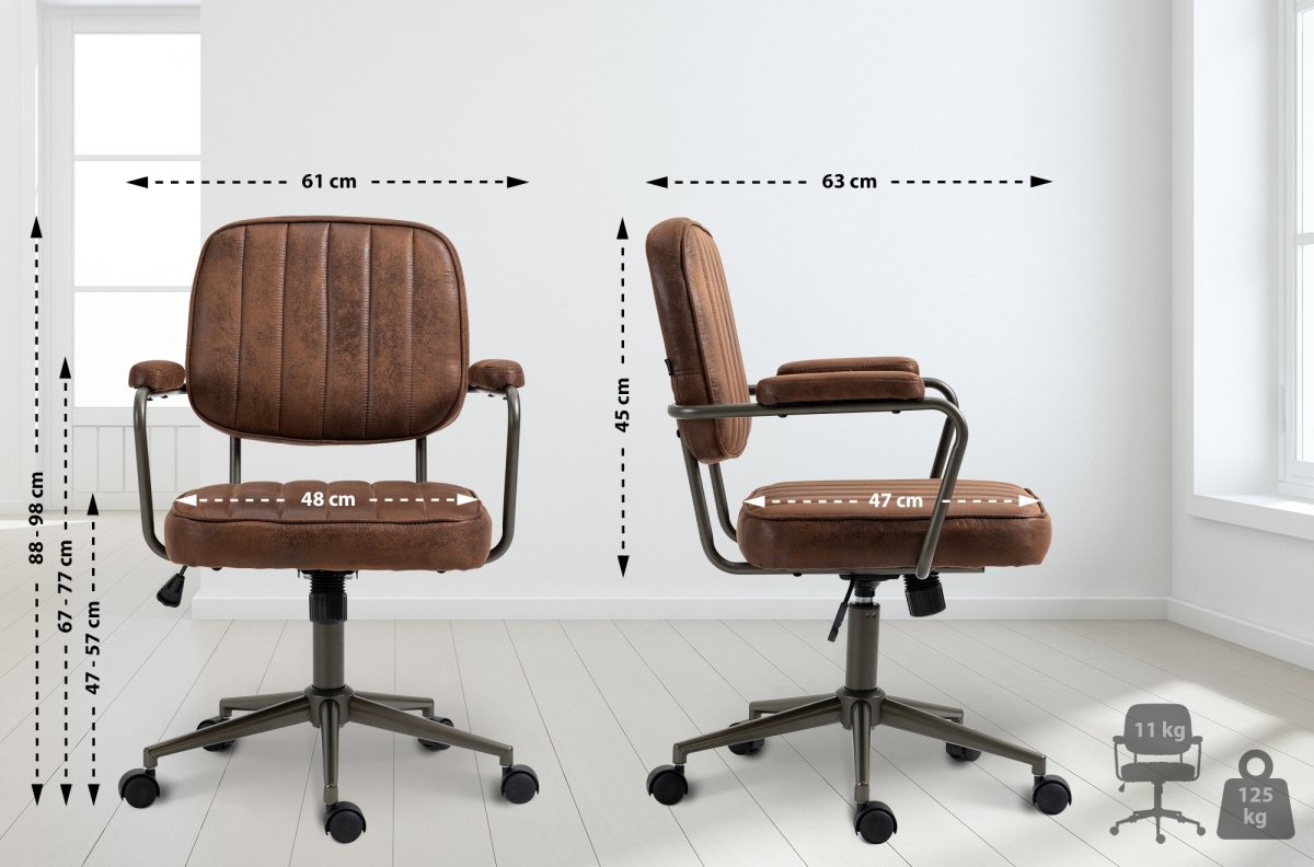 Kancelárske kreslo Natrona v priemyselnom štýle ponúka exkluzívny industriálny dizajn a maximálne pohodlie. Ergonomické sedenie s nastaviteľnou výškou, hojdacím mechanizmom a odolným poťahom z umelej kože zaručuje komfort pri dlhodobom používaní.