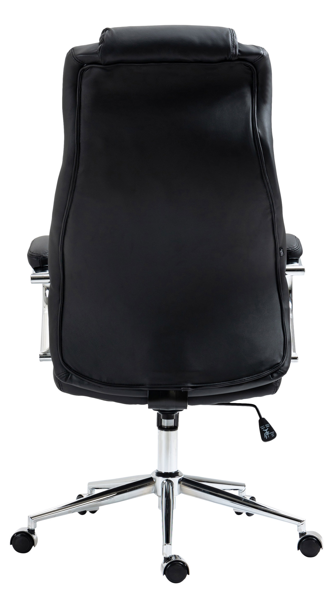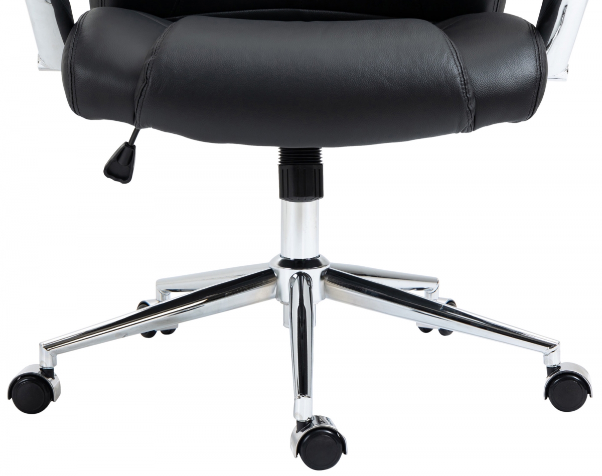 Poťah má poťah z pravej kože z kvalitnej odolnej hovädzej kože a kostra stoličky je kovová s chrómovým vzhľadom. S piatimi pohyblivými plastovými kolieskami s hladkým chodom umožňuje otočná stolička pohyb v pracovnom priestore bez námahy. Kancelárska stolička sa dá flexibilne nastaviť vo výške sedu a napnutí hojdacieho mechanizmu.
