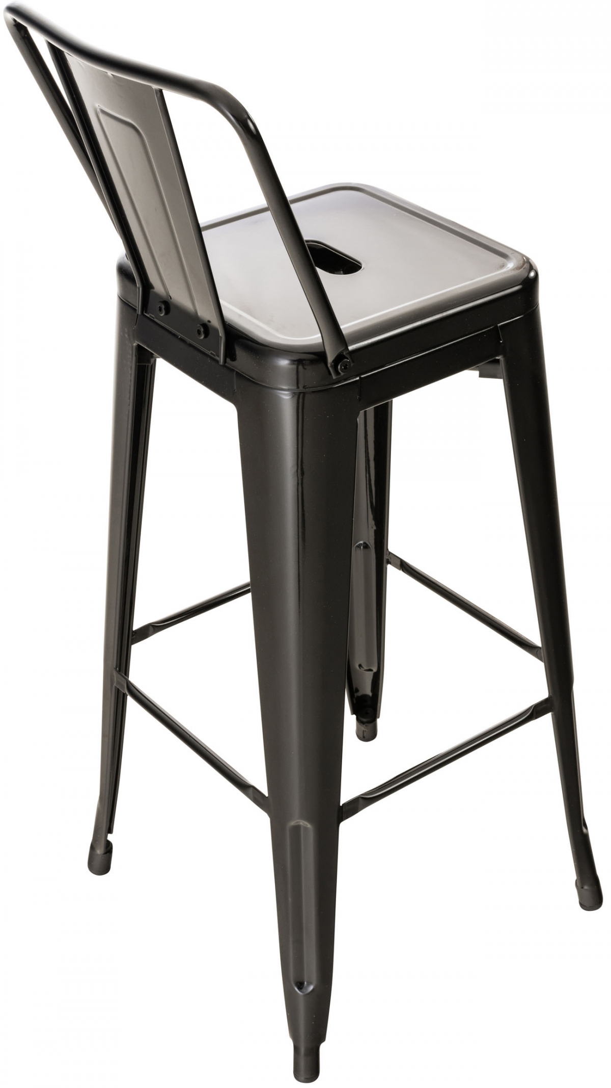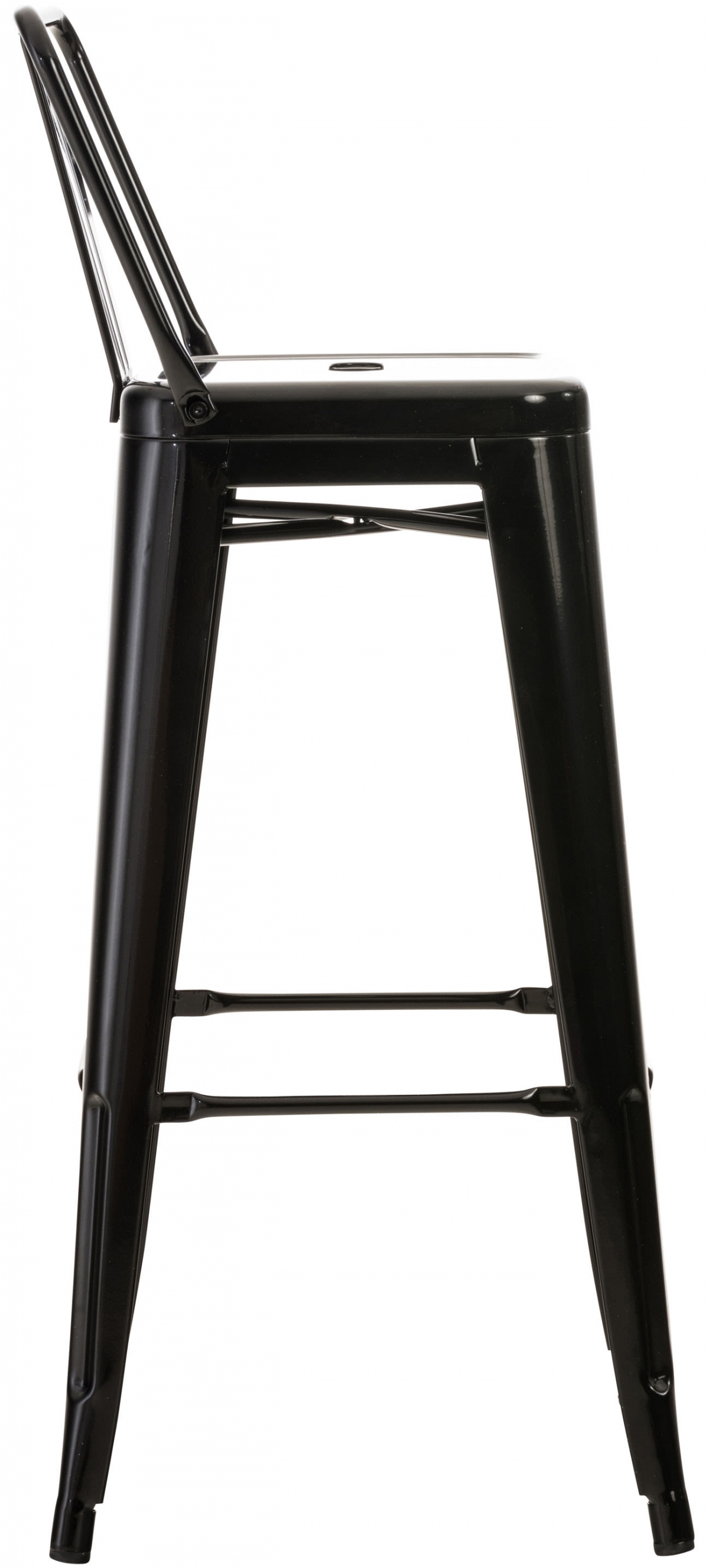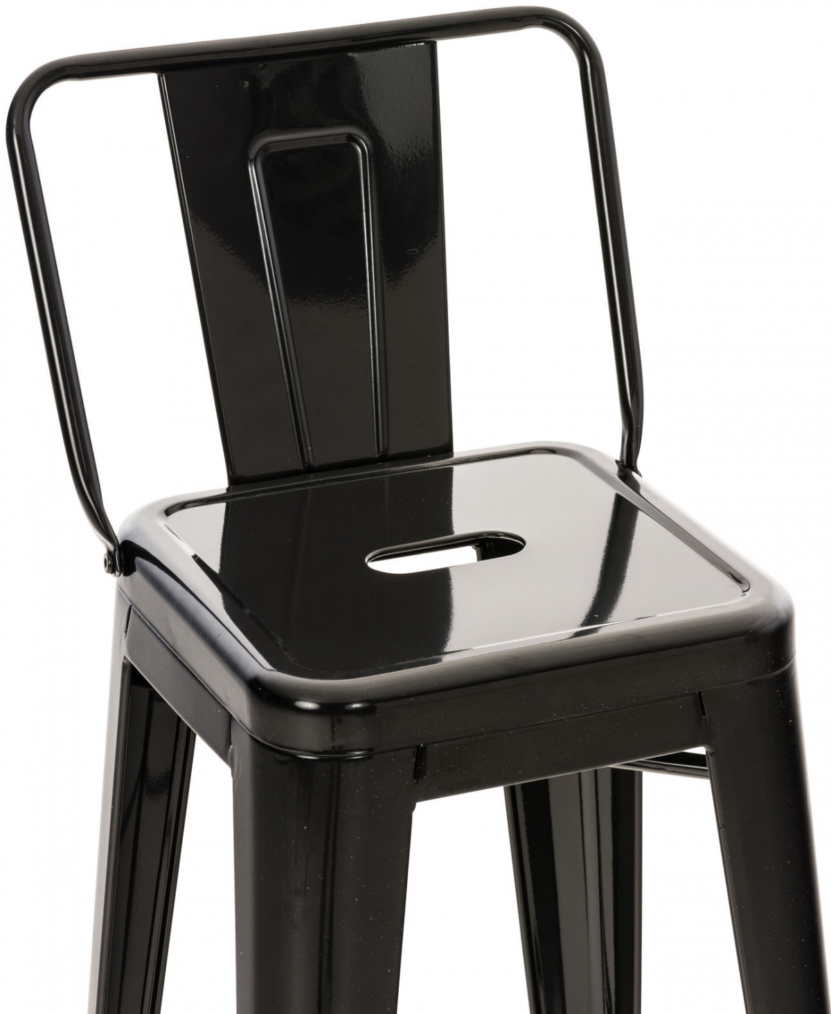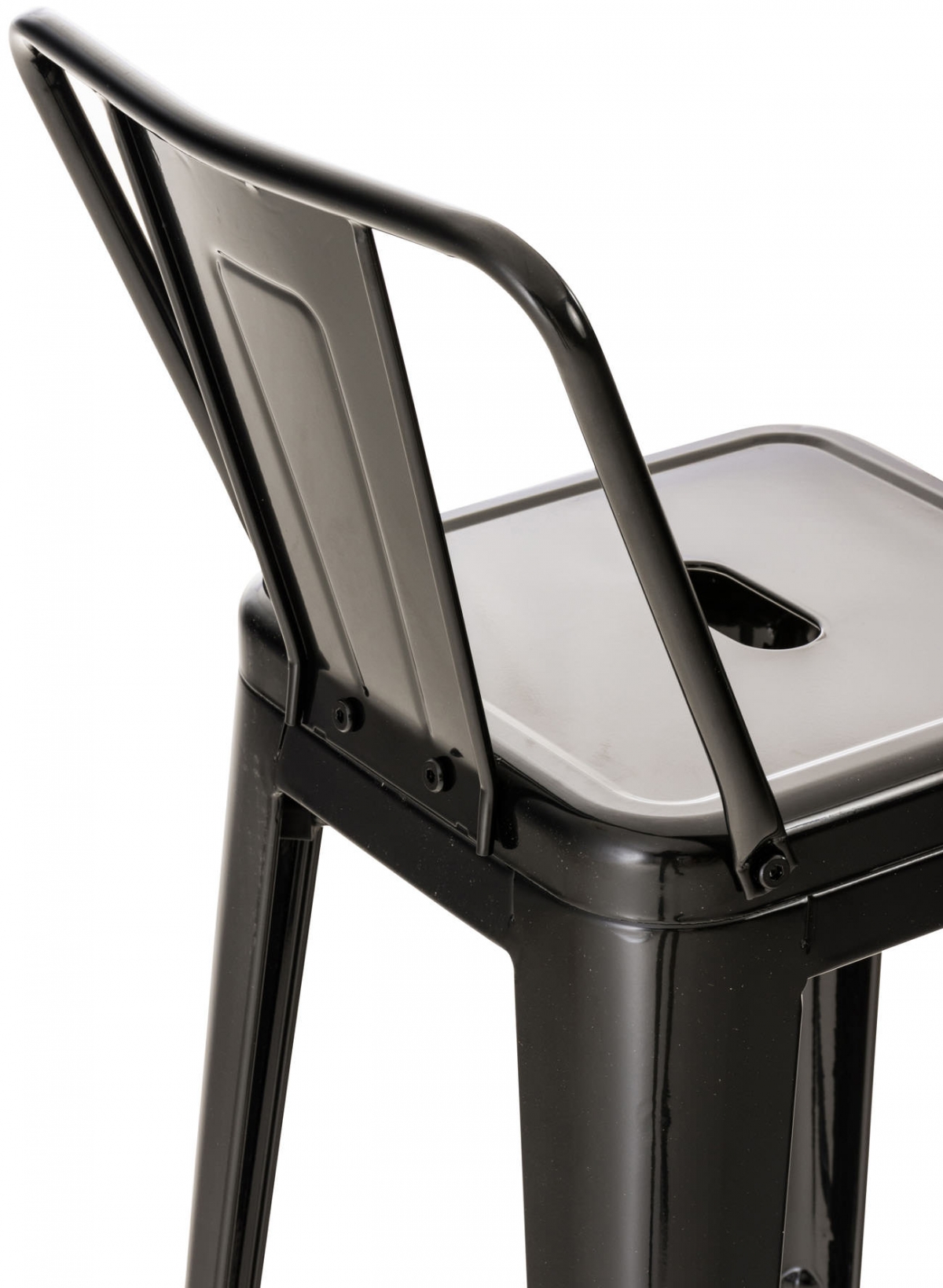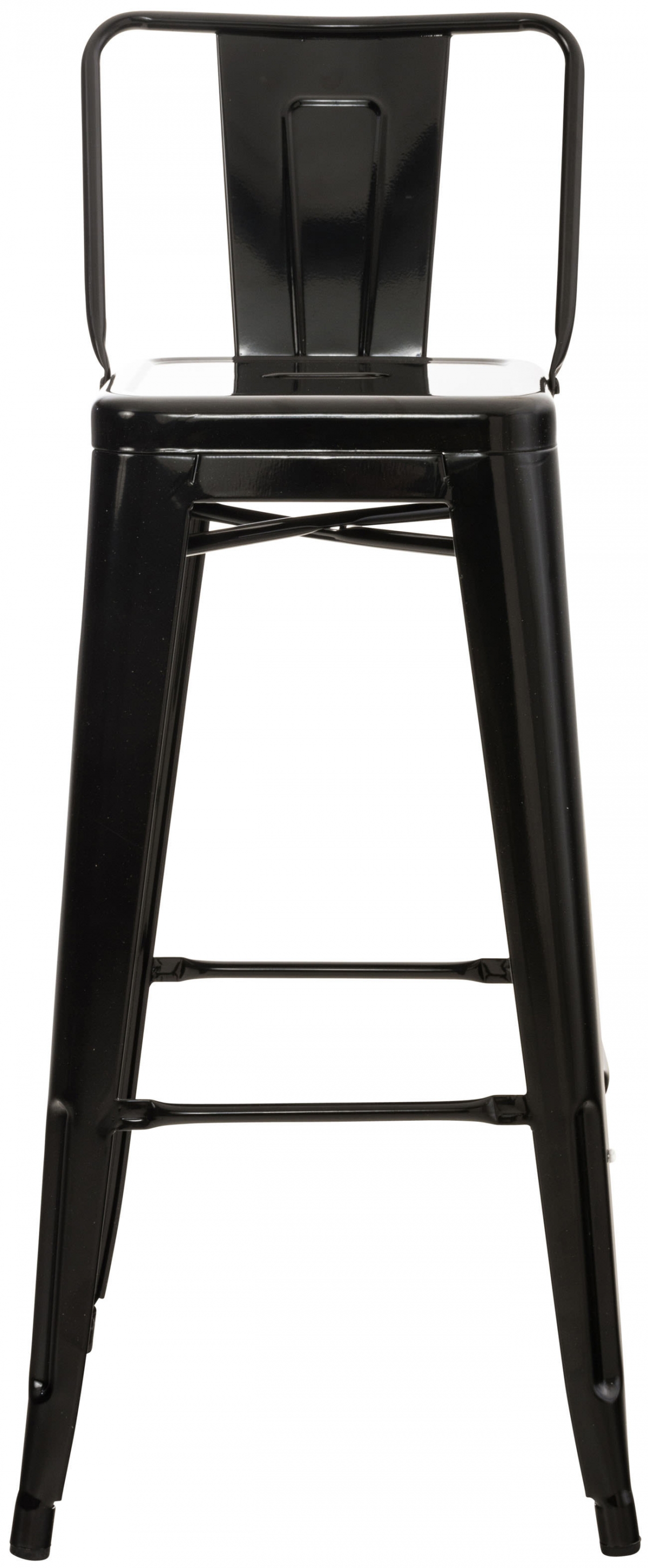 Barová stolička vyrobená z kovu s práškovou farbou poskytuje skutočnú odolnosť. Vysoký stupeň stability zabezpečuje priečna výstuž po sedacou plochou a medzi nohami stoličky, ktoré zároveň slúžia ako pohodlné opierky pre nohy.