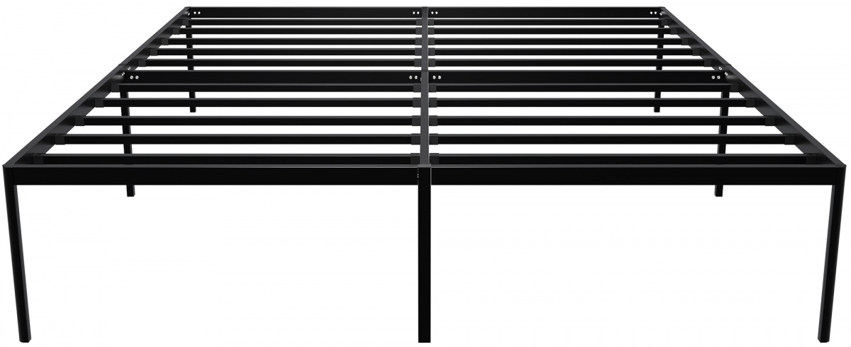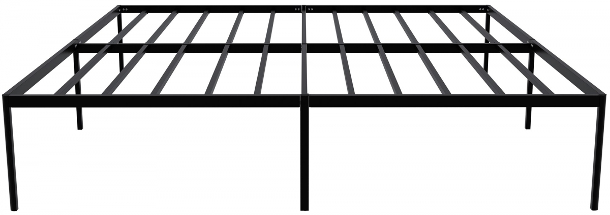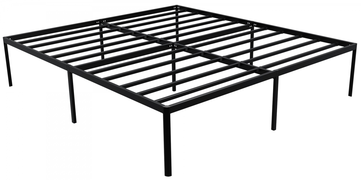 Kovová posteľ Hamlin v modernom minimalistickom štýle. Pevný oceľový rám, priestor pod roštom, ochrana podlahy. Rýchla montáž, nosnosť 300 kg, pre matrac 180x200 cm. Elegantný čierny dizajn pre vašu spálňu.