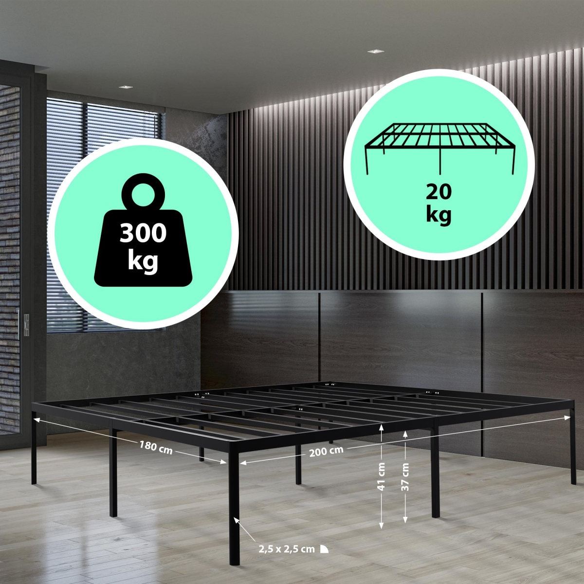 Rám postele je vyrobený výhradne z ocele a je obzvlášť pevný a robustný.