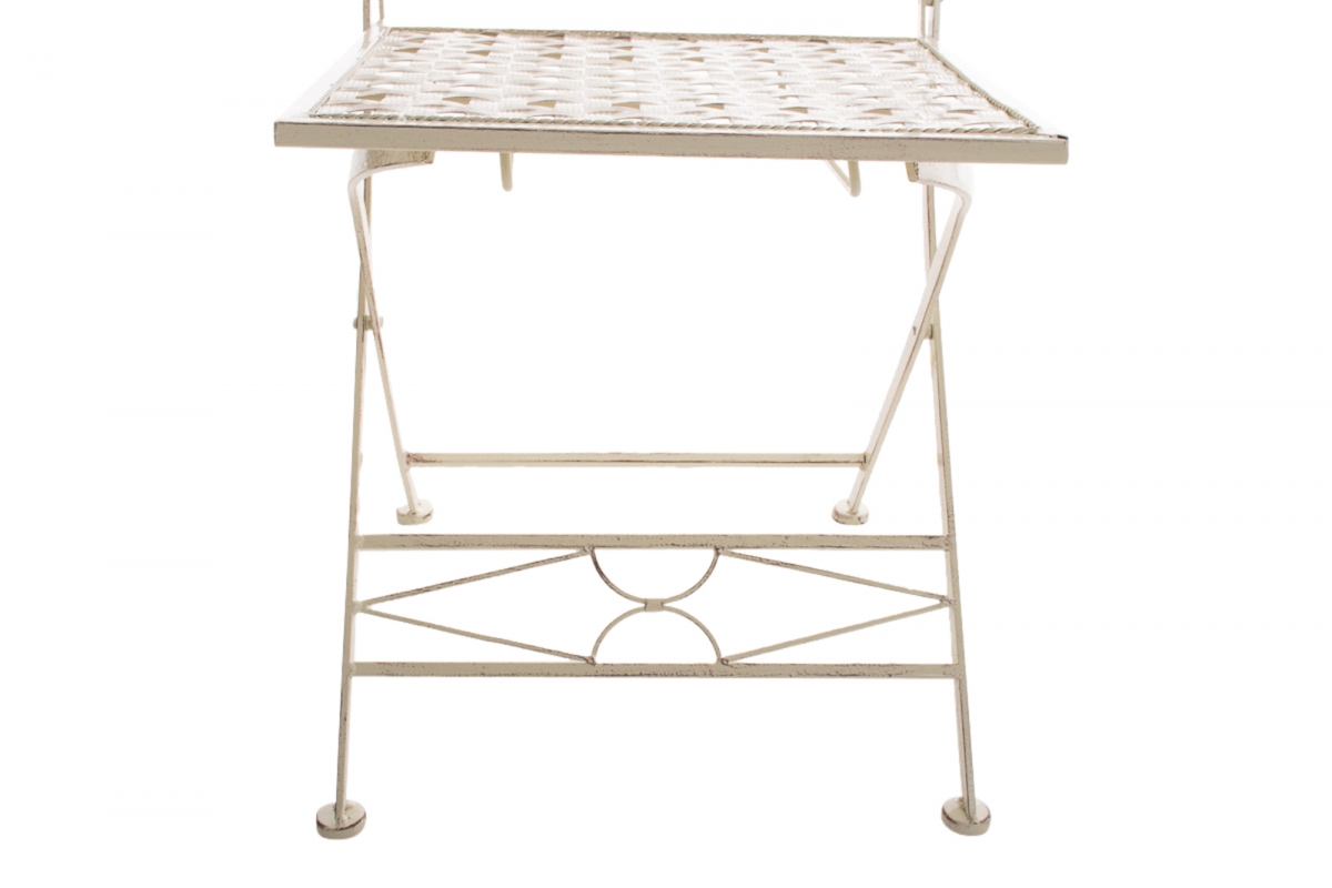 Krásna nostalgická záhradná stolička z ručne kovaného železa s antickou patinou. Elegantný dizajn dodá vašej terase alebo záhrade nádych minulosti. Kvalitné spracovanie a skladací dizajn pre ľahké uskladnenie.