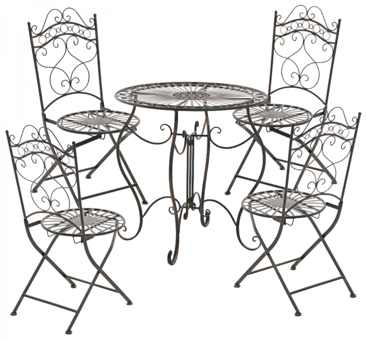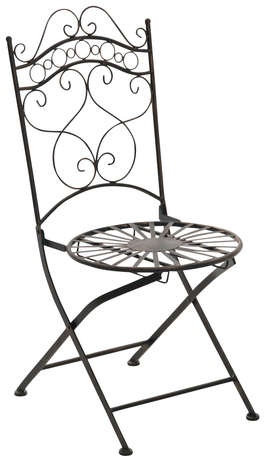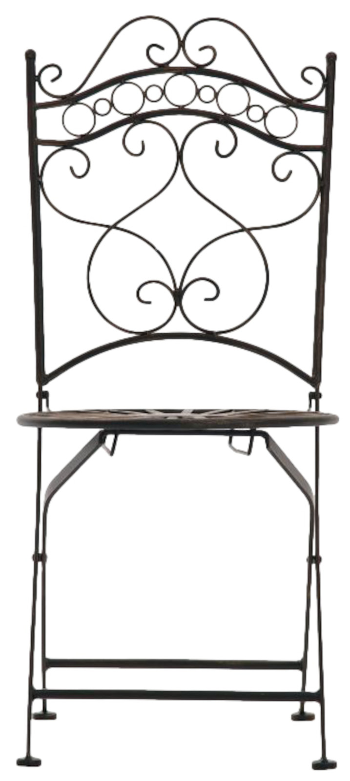 Výrobok je ručne vyrobený zo železa s povrchom v starožitnej patine. Stolička sa dokonale hodí k našej ponuke stolov.
