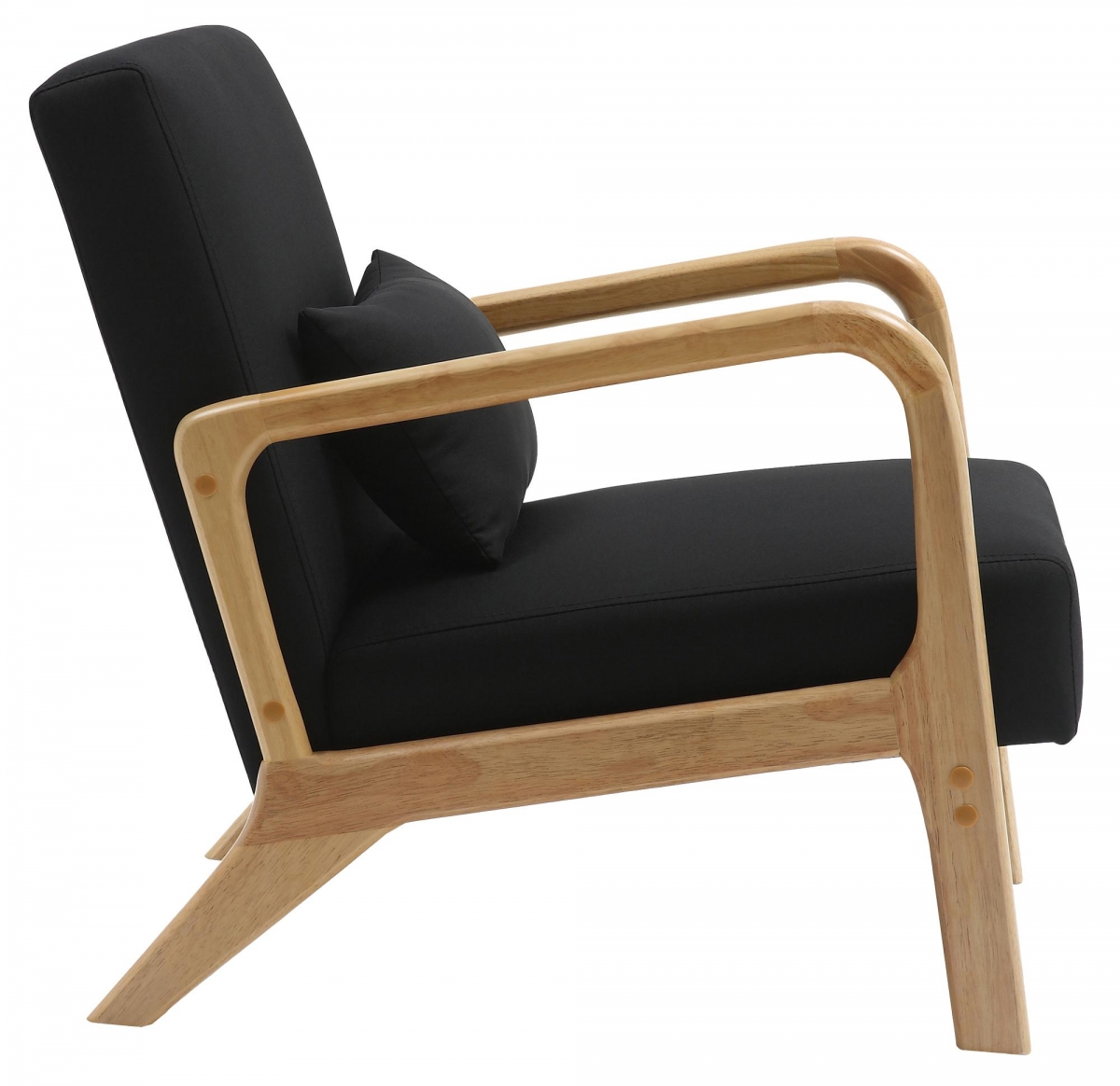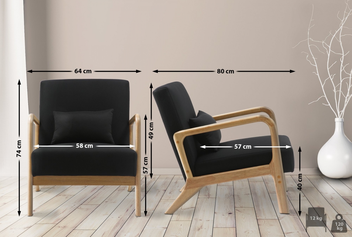 Priestranné kreslo zaujme odolným látkovým poťahom v módnych farbách a pevnými nohami zo svetlého kaučukovníka.