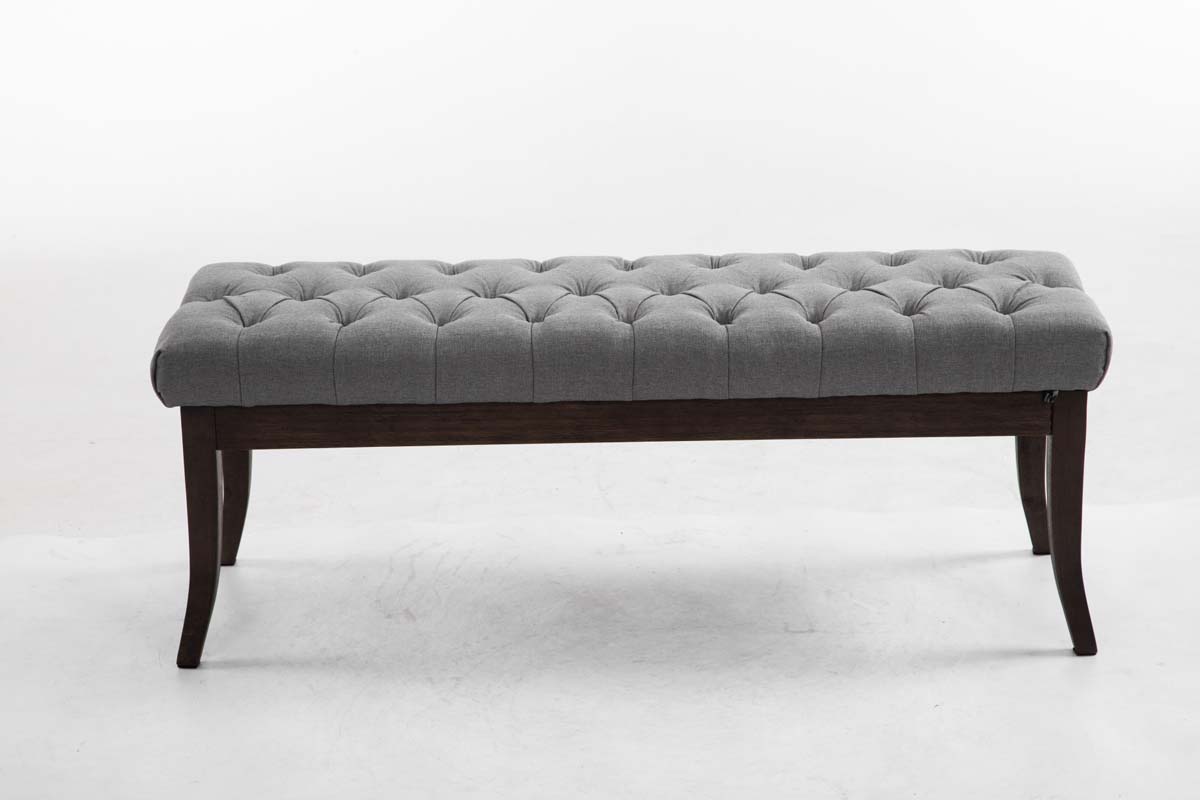 Štýlová čalúnená lavica s prešívaným sedákom a drevenými nohami. Komfortný kus nábytku vhodný do obývačky, chodby či jedálne. Rozmery 120x38x46 cm, poťah z polyesteru, rám z masívneho dreva.