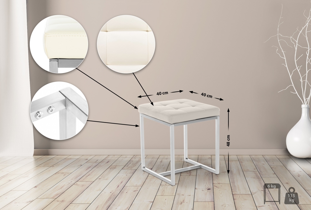 Štýlová lavička z nerezovej ocele s koženkovým sedadlom ponúka flexibilné a univerzálne využitie. S kompaktnými rozmermi 40x48x40 cm a hmotnosťou len 6 kg je ideálna pre moderné interiéry aj exteriéry.