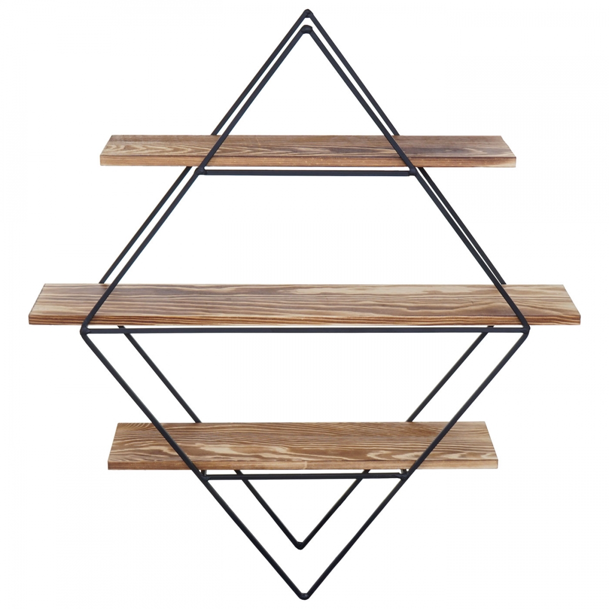 Nástenná polica A80 v industriálnom štýle - drevo / kov, 60x55x12 cm - Hnedá