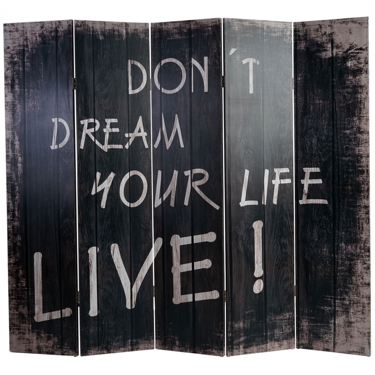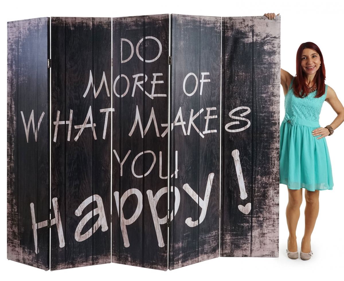 Elegantný 5-dielny paraván s obojstrannou potlačou na látke natiahnutej na drevenom ráme. Tento štýlový kúsok s rozmermi 180x200x2,5 cm dodá každej miestnosti nový šmrnc a prakticky rozdelí priestor.