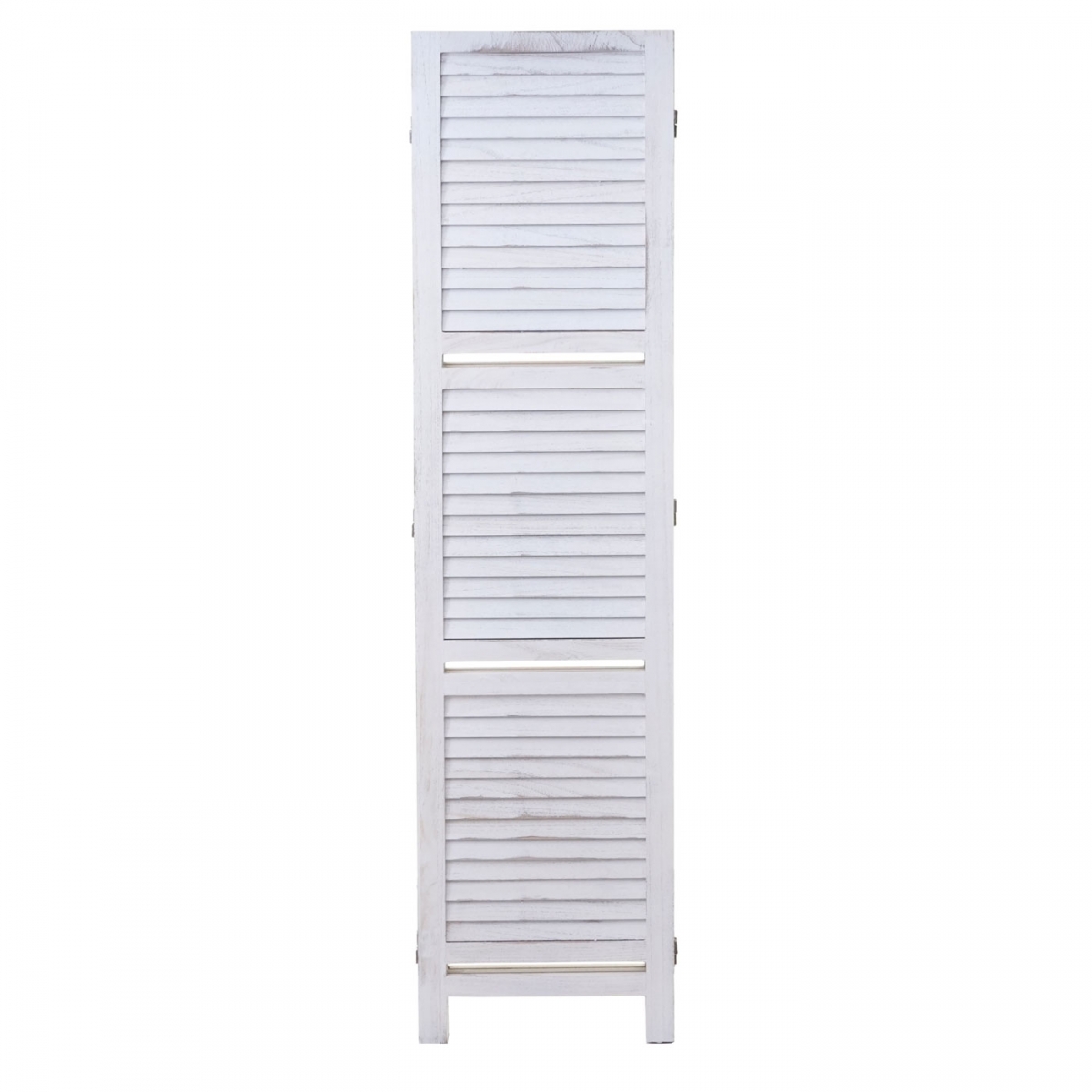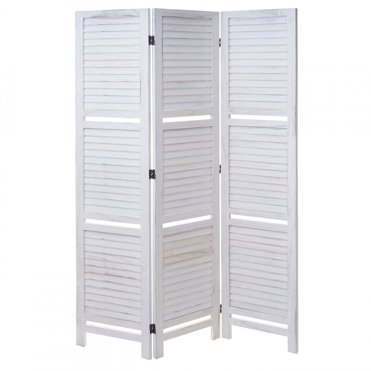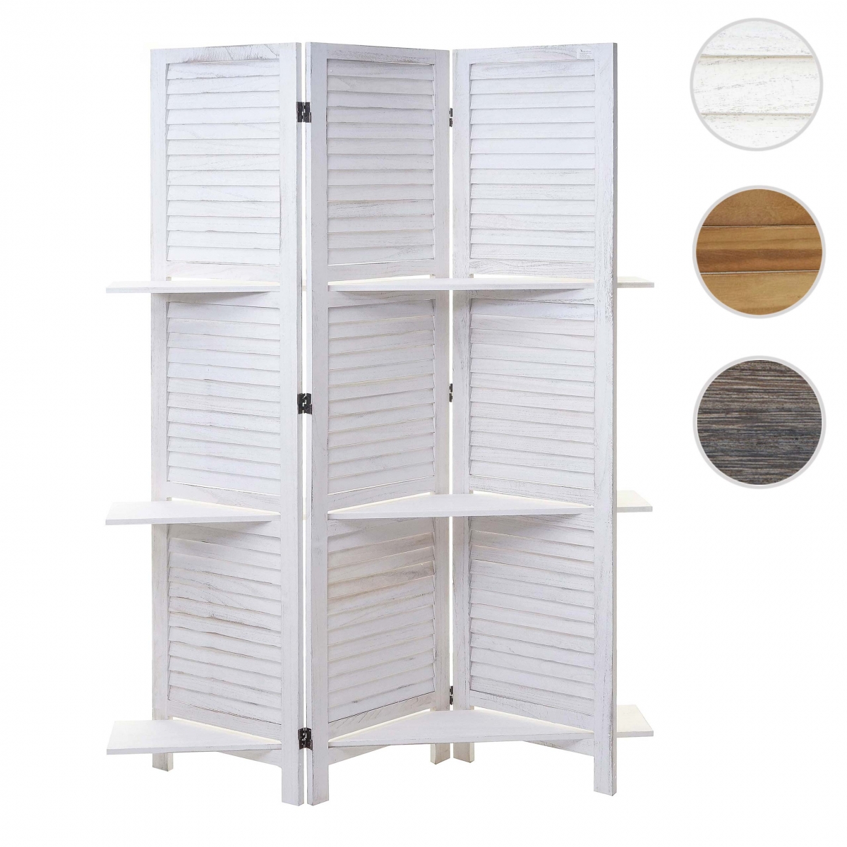 Skladací paraván z dreva paulovnia s 3 praktickými poličkami v shabby chic štýle. Rustikálny vzhľad s nádychom vintage, ideálny na dekoráciu a úložný priestor. Ľahký a stabilný, výška 170 cm, šírka 125 cm.