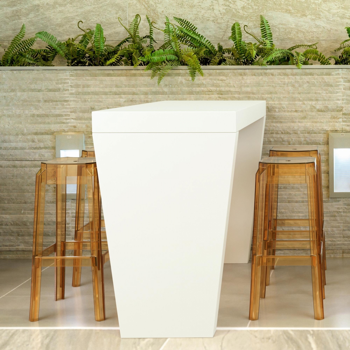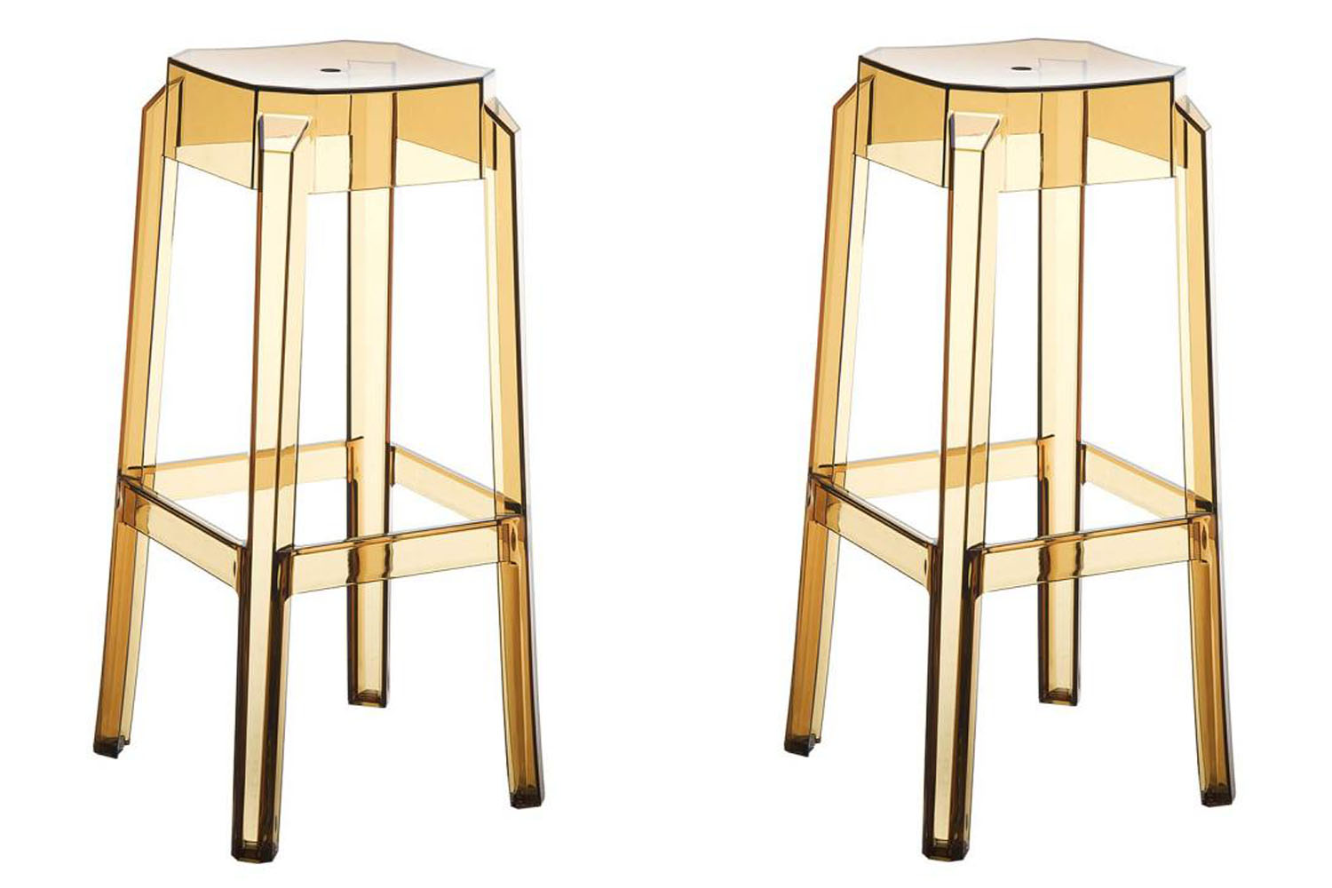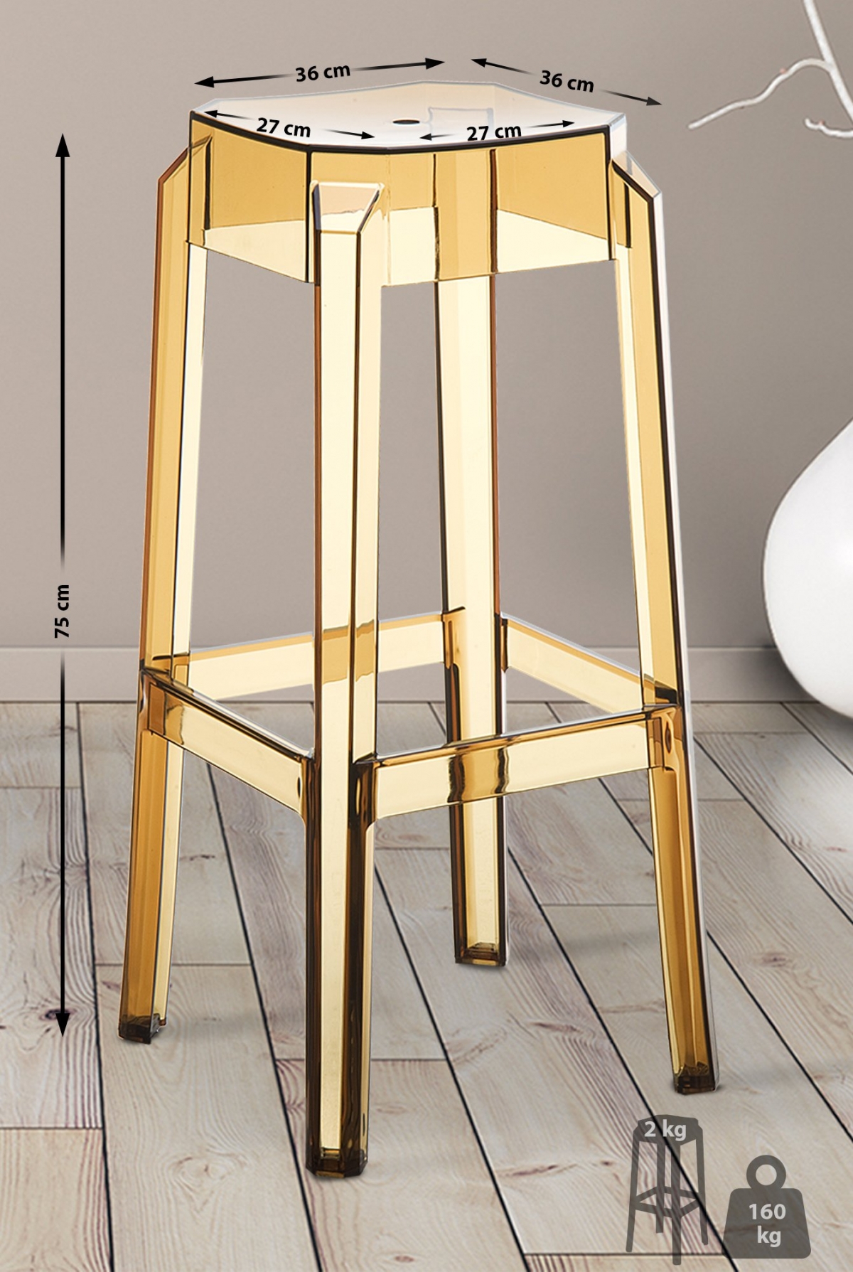 Moderná barová stolička FOX z vysoko lešteného nylonu alebo priehľadného polykarbonátu. Odolná voči poveternostným vplyvom a UV žiareniu, s rozmermi 75x36x36 cm, dodá baru sofistikovaný vzhľad a atmosféru.