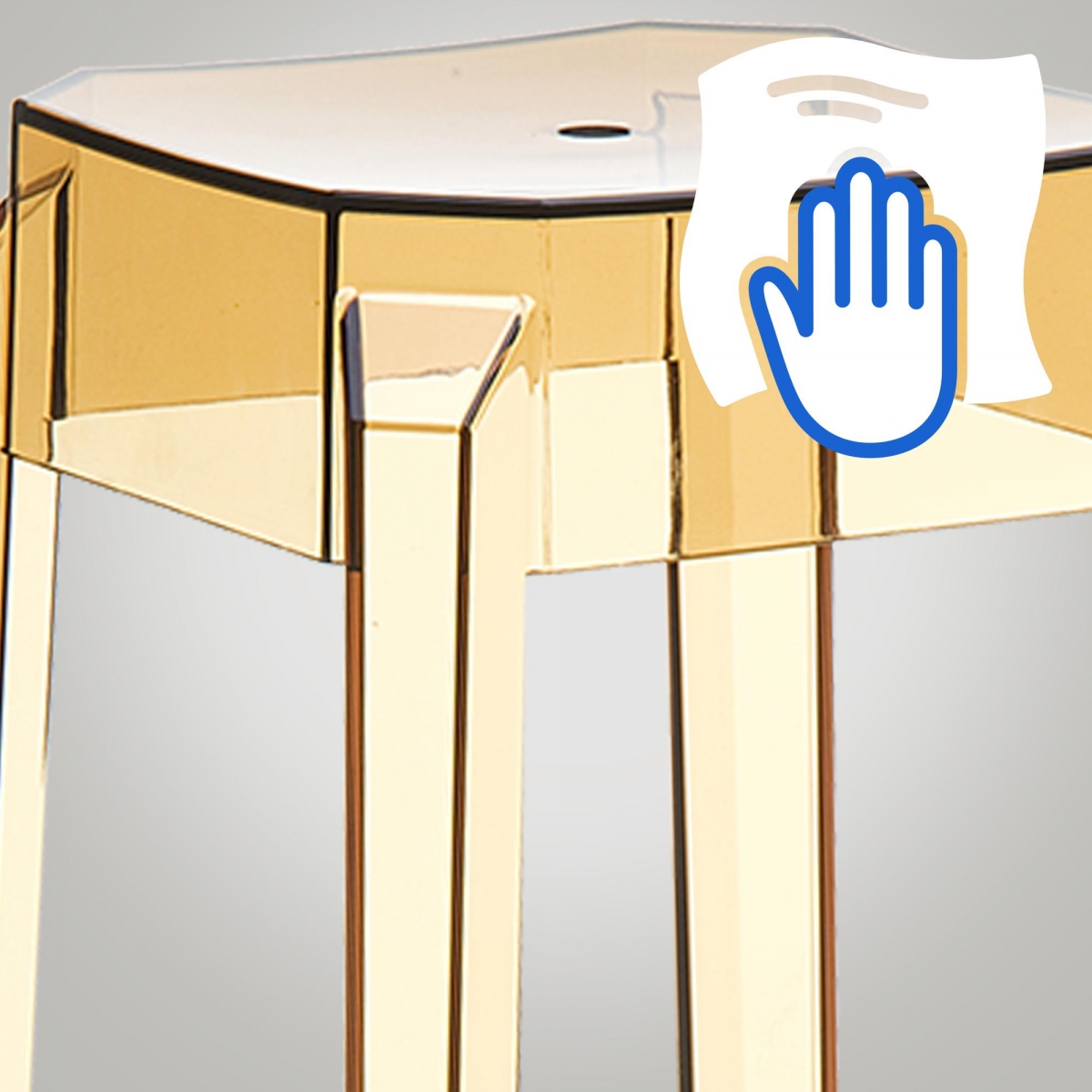 Stolička je kompletné vyrobená z vysoko lešteného Techno-polyméru PA6 nylon alebo priehľadného polykarbonátu.
