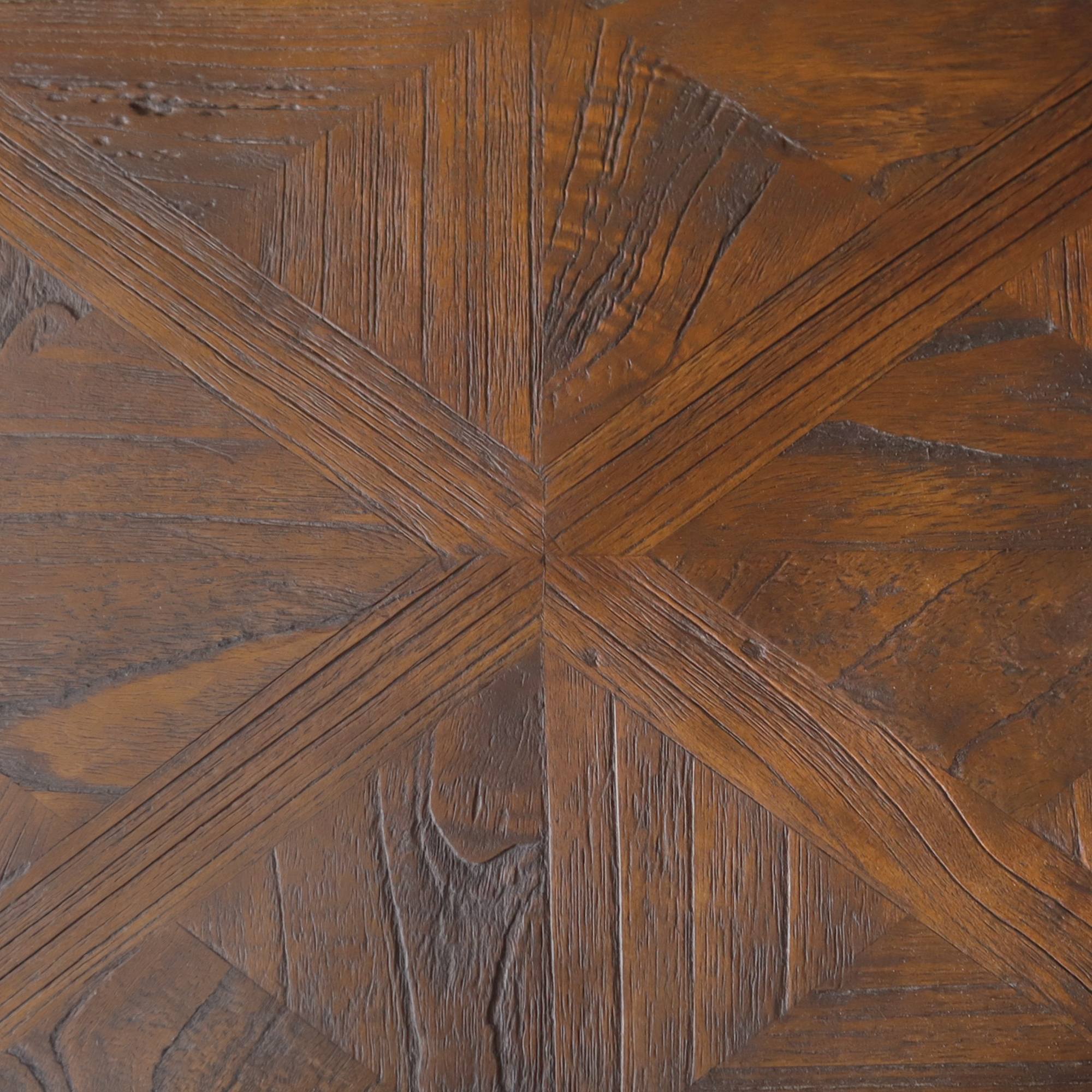 Obdĺžniková doska stola je vyrobená z robustného a odolného dreva Mindiholz a je spracovaná v dekoratívnej mozaikovej štruktúre. Povrch dosky stola podčiarkuje prirodzený charakter materiálu.