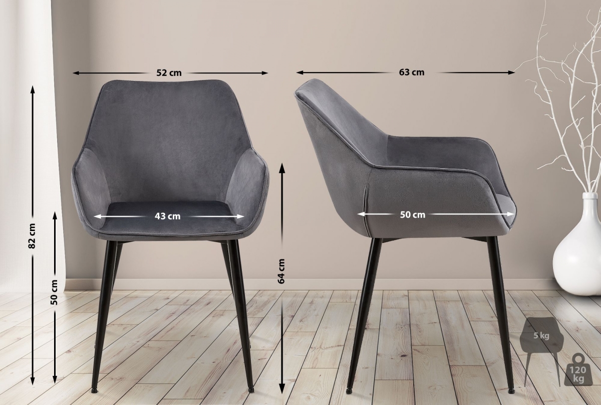Set 2 jedálenských stoličiek Vessa zamat - tmavošedá
