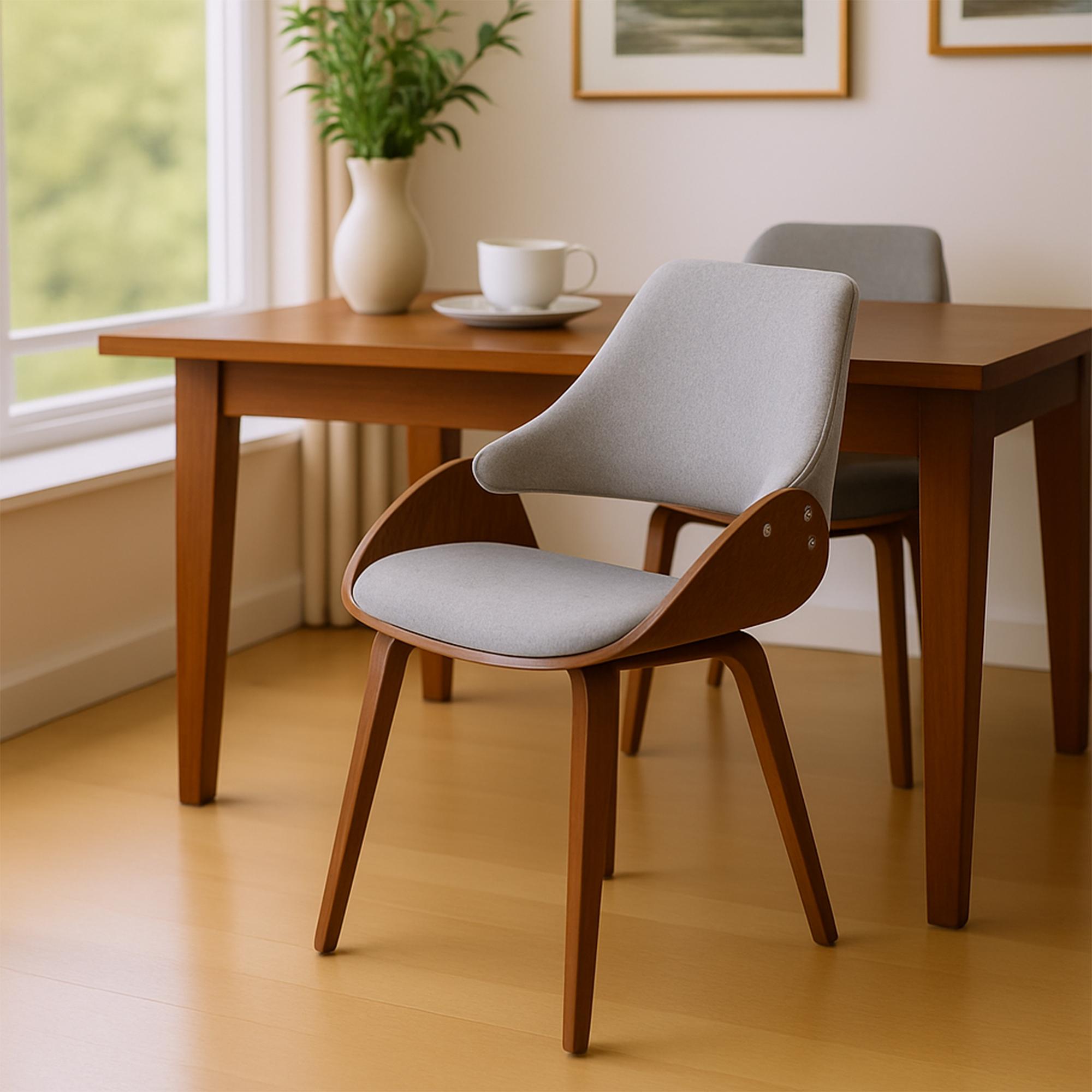 Sada jedálenských stoličiek Vangale ponúka štýlový komfort s čalúnenými sedadlami a operadlami. Stabilný rám z ohýbaného dreva zabezpečuje dlhú životnosť a chráni podlahy pomocou filcových podložiek.